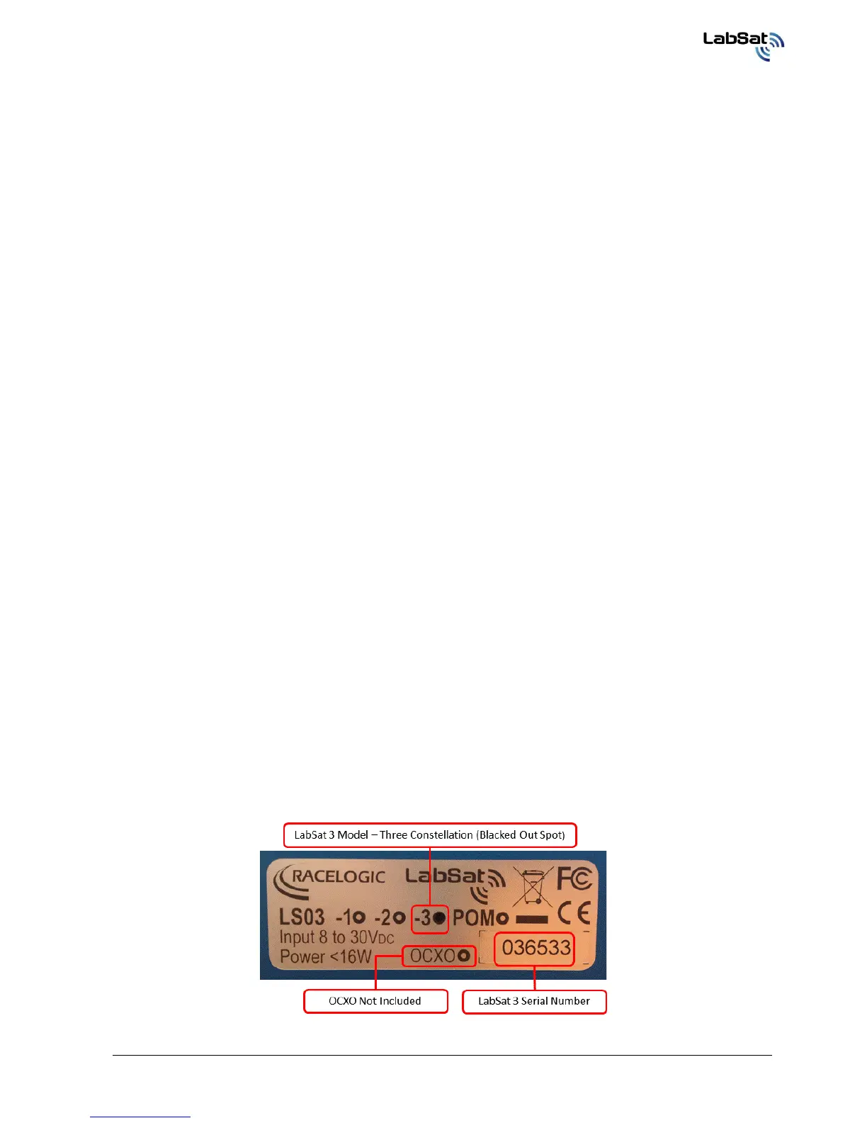 The LabSat 3 label is located on the left side toward the rear. Please quote your serial number in all