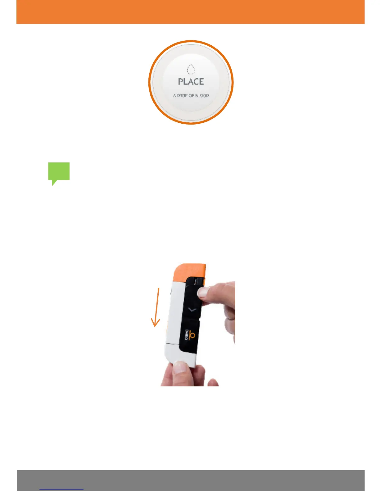 orange release button with your thumb to prick your finger, as shown in