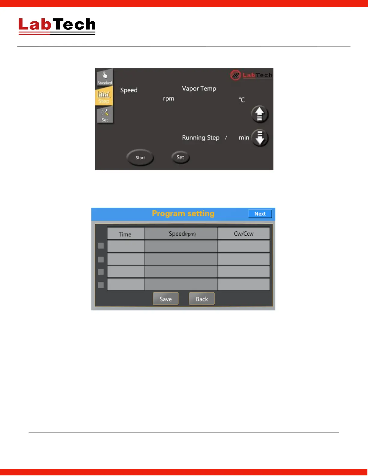 The EV400 Touch supports up to 8 steps with parameters including time, rotation speed, direction (0: