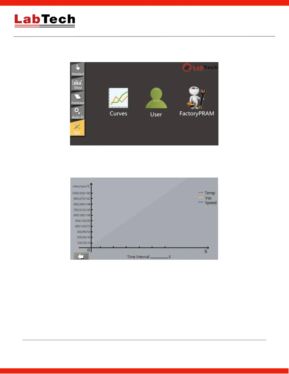 1) Distillation curves: Click the Curves icon to check the evaporation info. including rotation speed, vacuum