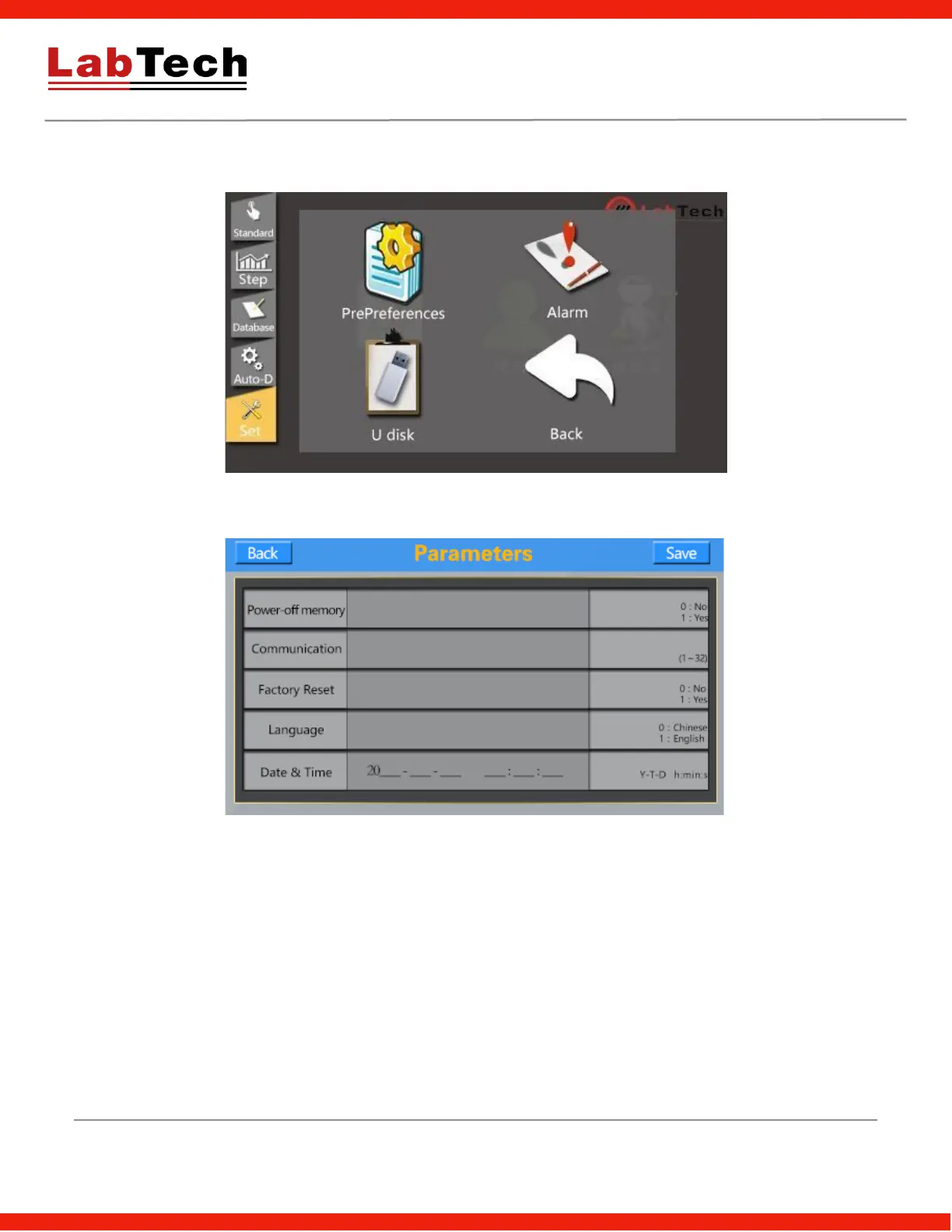 Parameters: please don't change the factory set parameters if unnecessary.