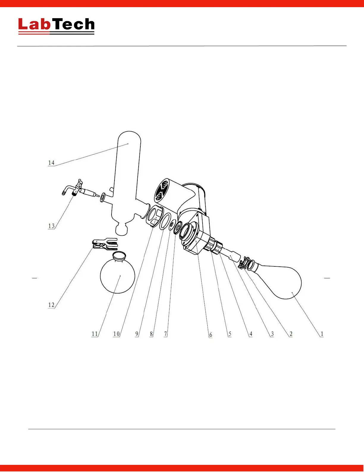 Auxiliary Seal Ring 9. Spring 10. Condenser Lock Handwheel 11. Receiving Flask 12. Clamp 13. Sample Adding