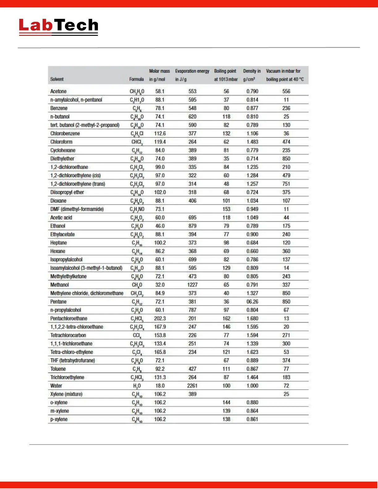SOLVENTS TABLE