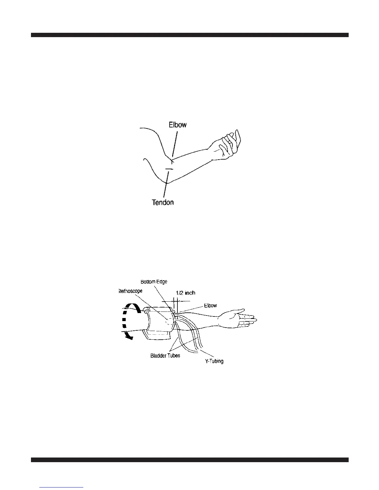 approximately one-half inch above the elbow. Adjust the cuff