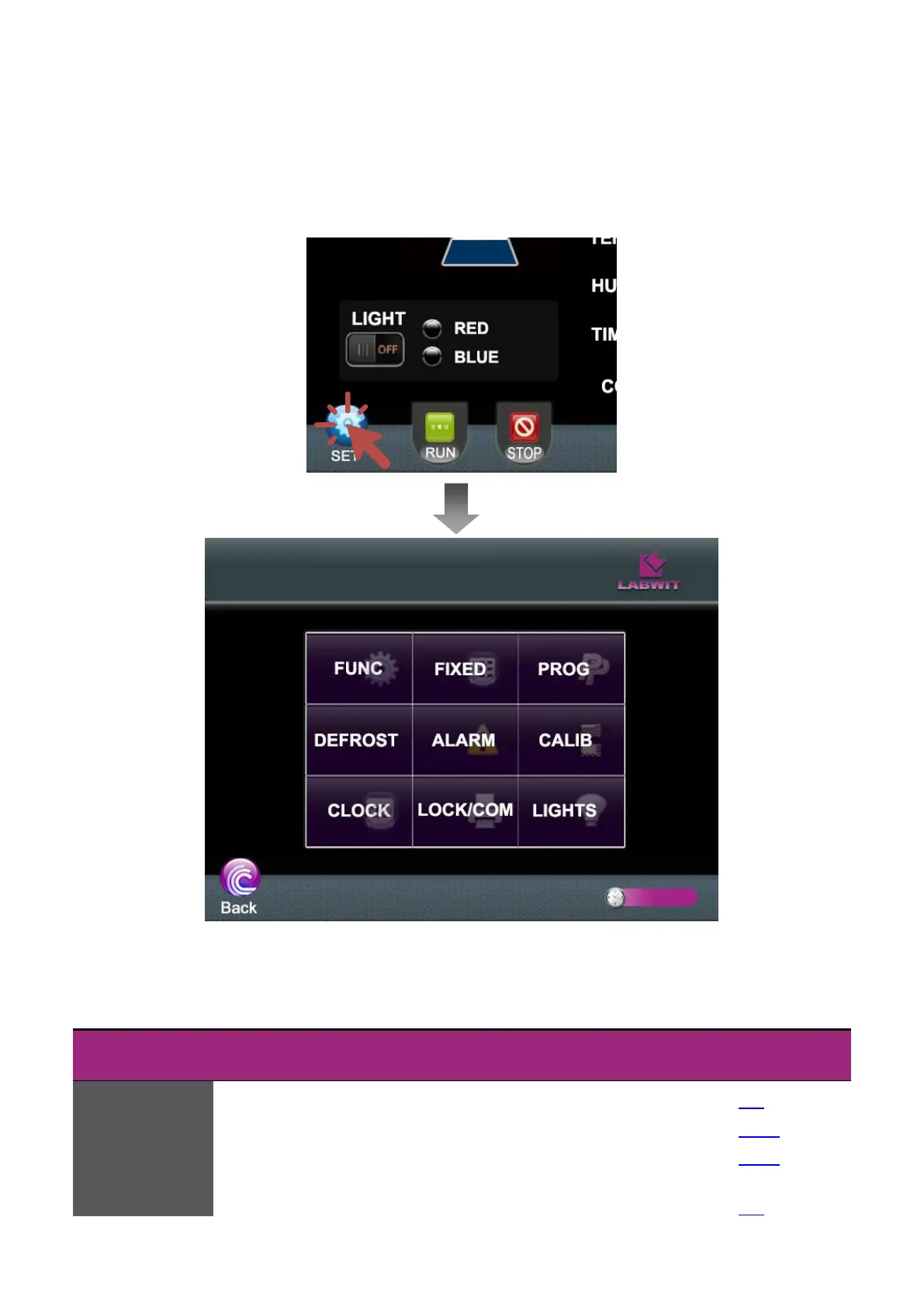 The Set Menu page are accessible by pressing the “Set” icon in the home page.