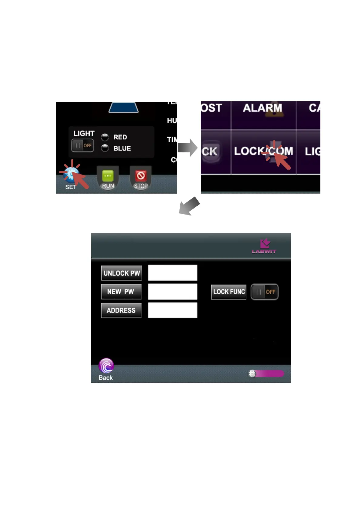 Press this button and enter the current unlock password, to activate the settings