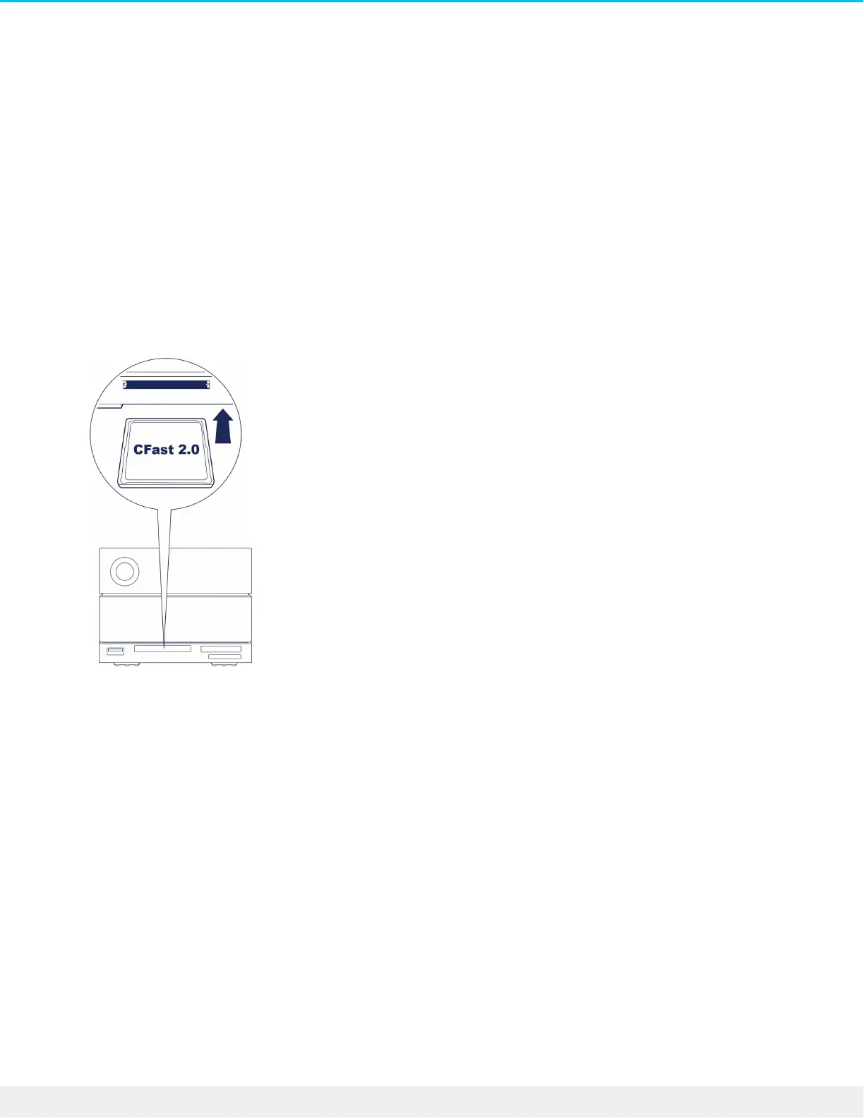 2. Insert the card into the CFast 2.0 slot on the front of the device and gently push it in until it’s seated in