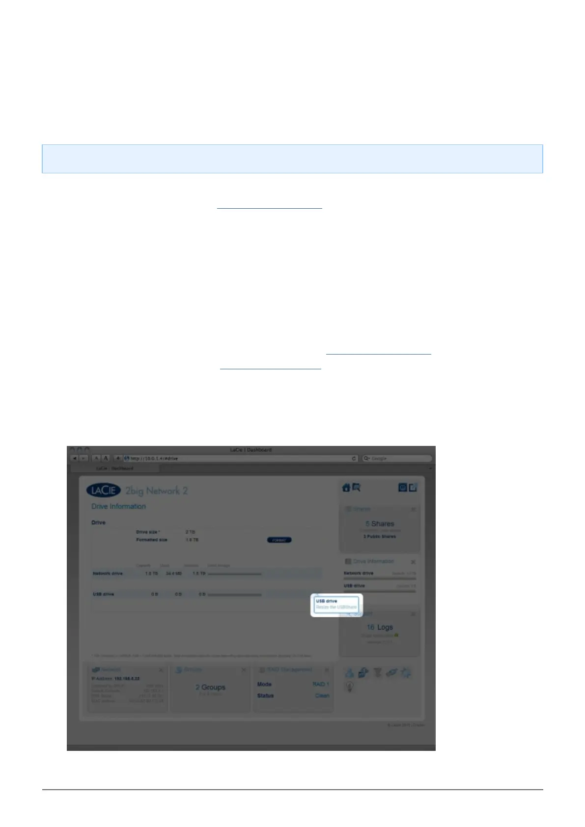 This chapter explains how to connect your LaCie d2 or 2big Network 2 to a computer via USB. For details on