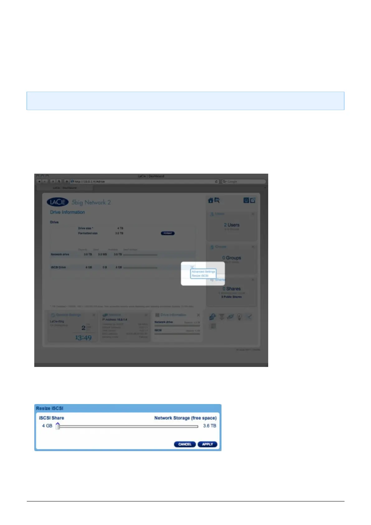 this, iSCSIShare will be created automatically. To change the storage allocated to iSCSI: