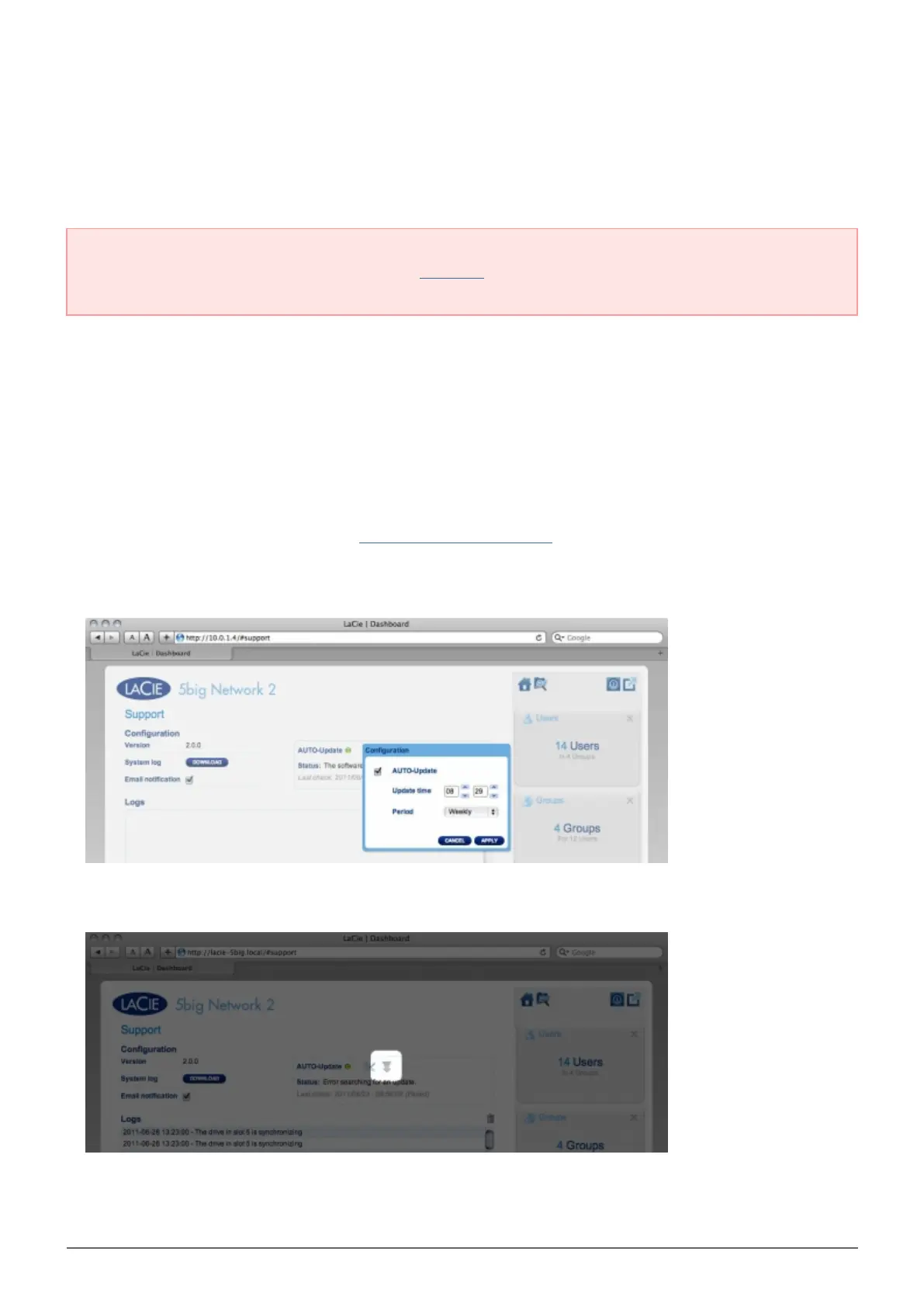 LaCie may improve your LaCie NAS' software or add new features over time. See below for updating information.