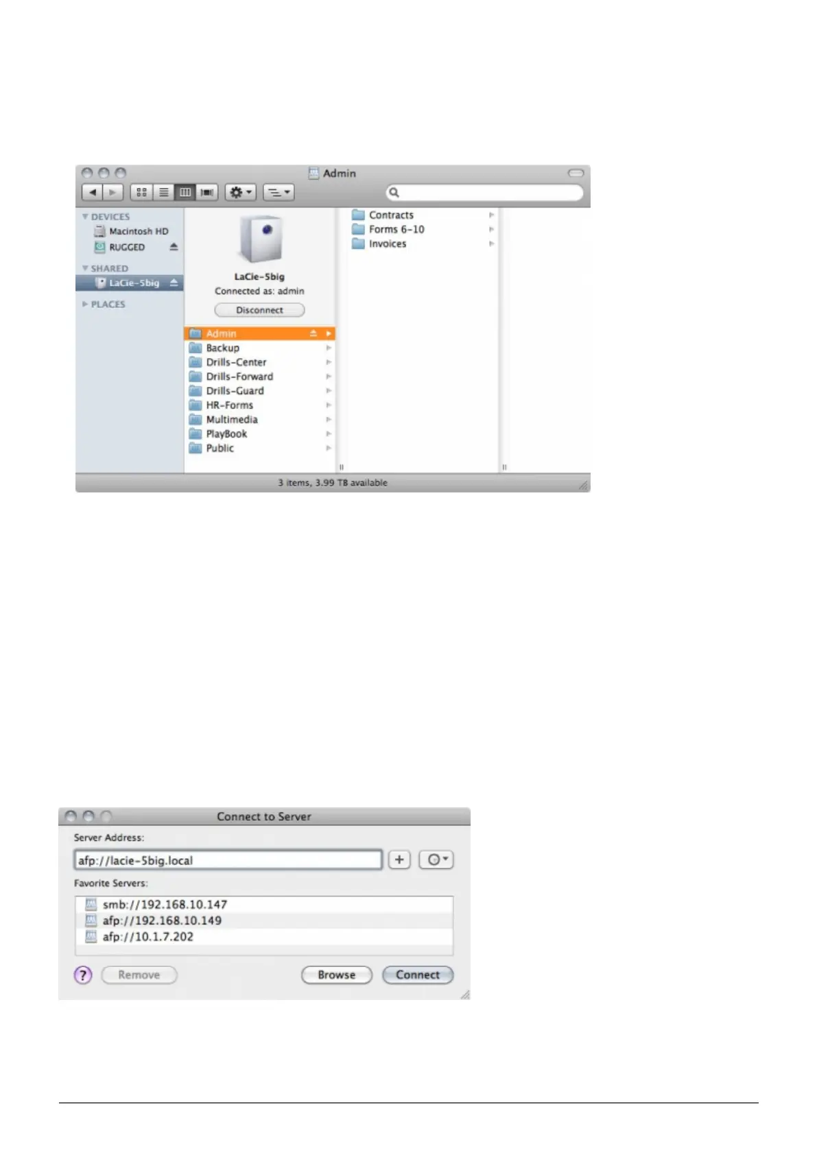 In your Finder, navigate to Go > Connect to Server.1.