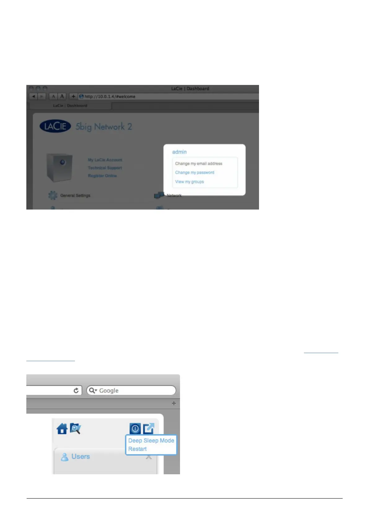 To restart or put the NAS into deep sleep mode, click this button, then choose between Restart and Deep
