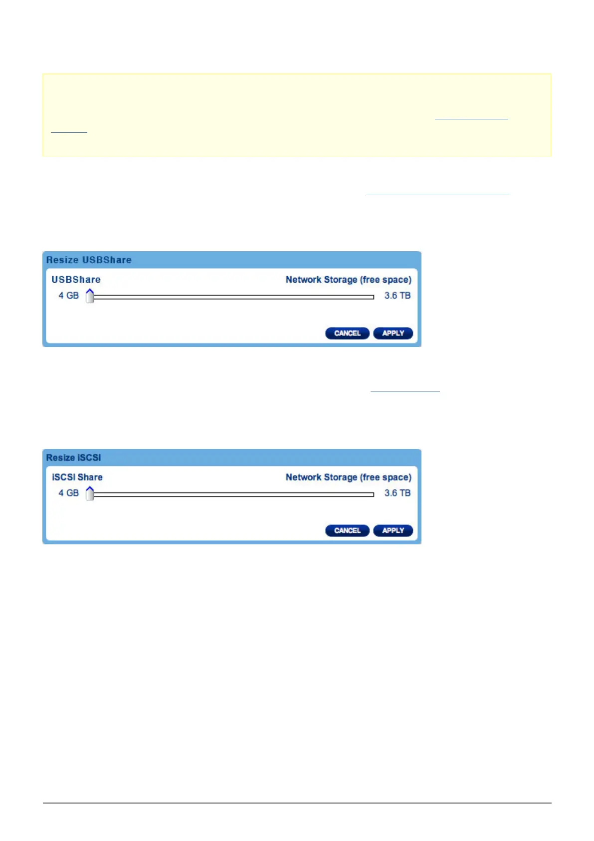 On this page, you have the ability to allocate storage to iSCSIShare. See Configure iSCSI for details. To change
