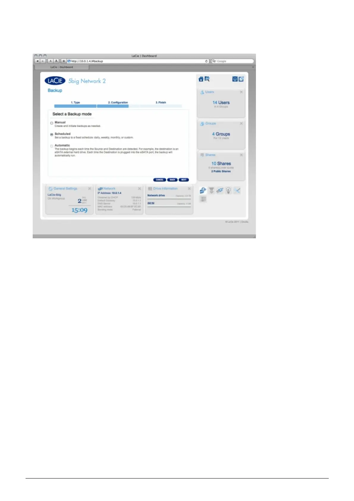 If you selected Scheduled backup mode in the previous screen, choose a frequency and a time, then click6.