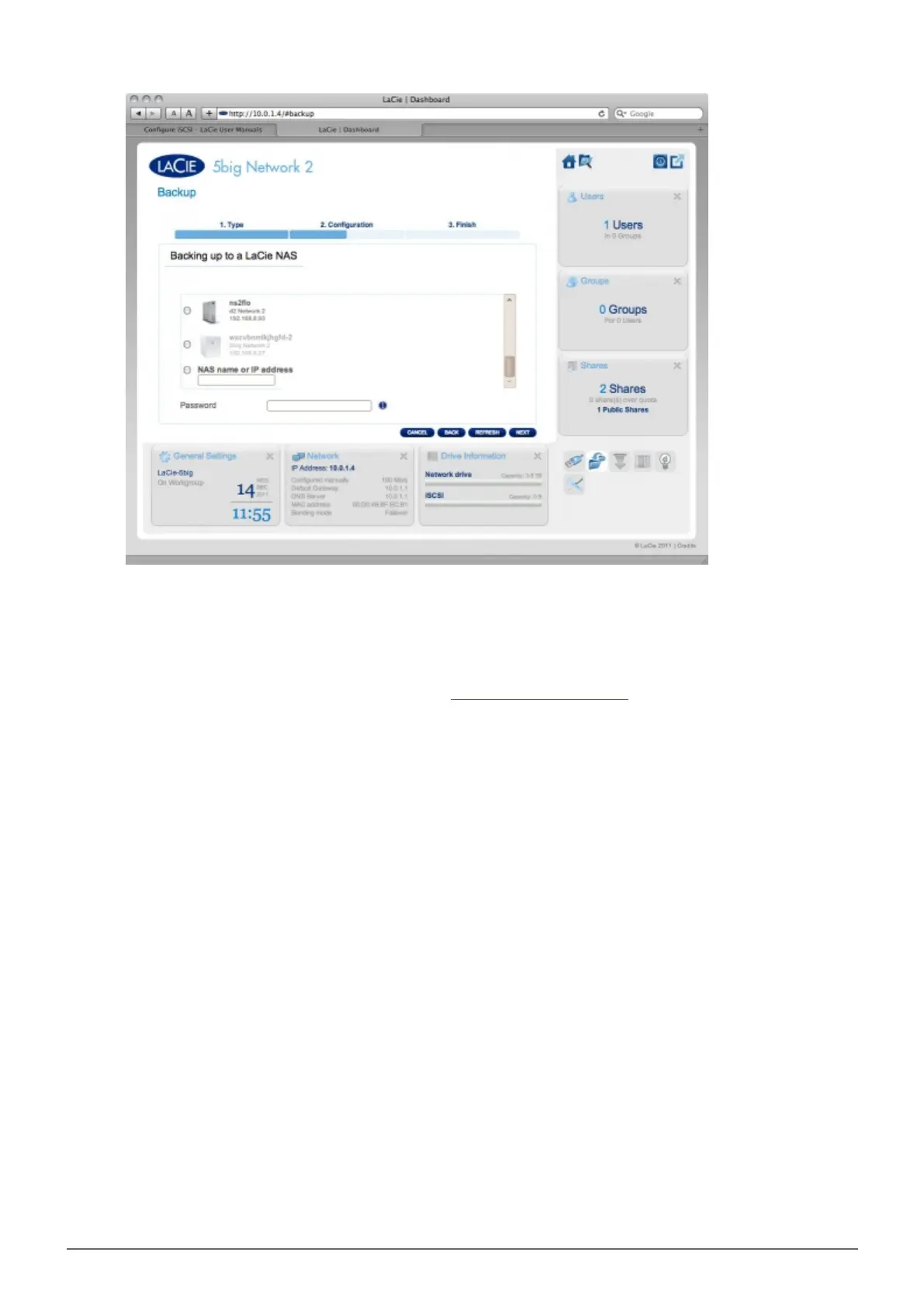 Or, type in the public IP address of a remote LaCie NAS, then type in the password you created when