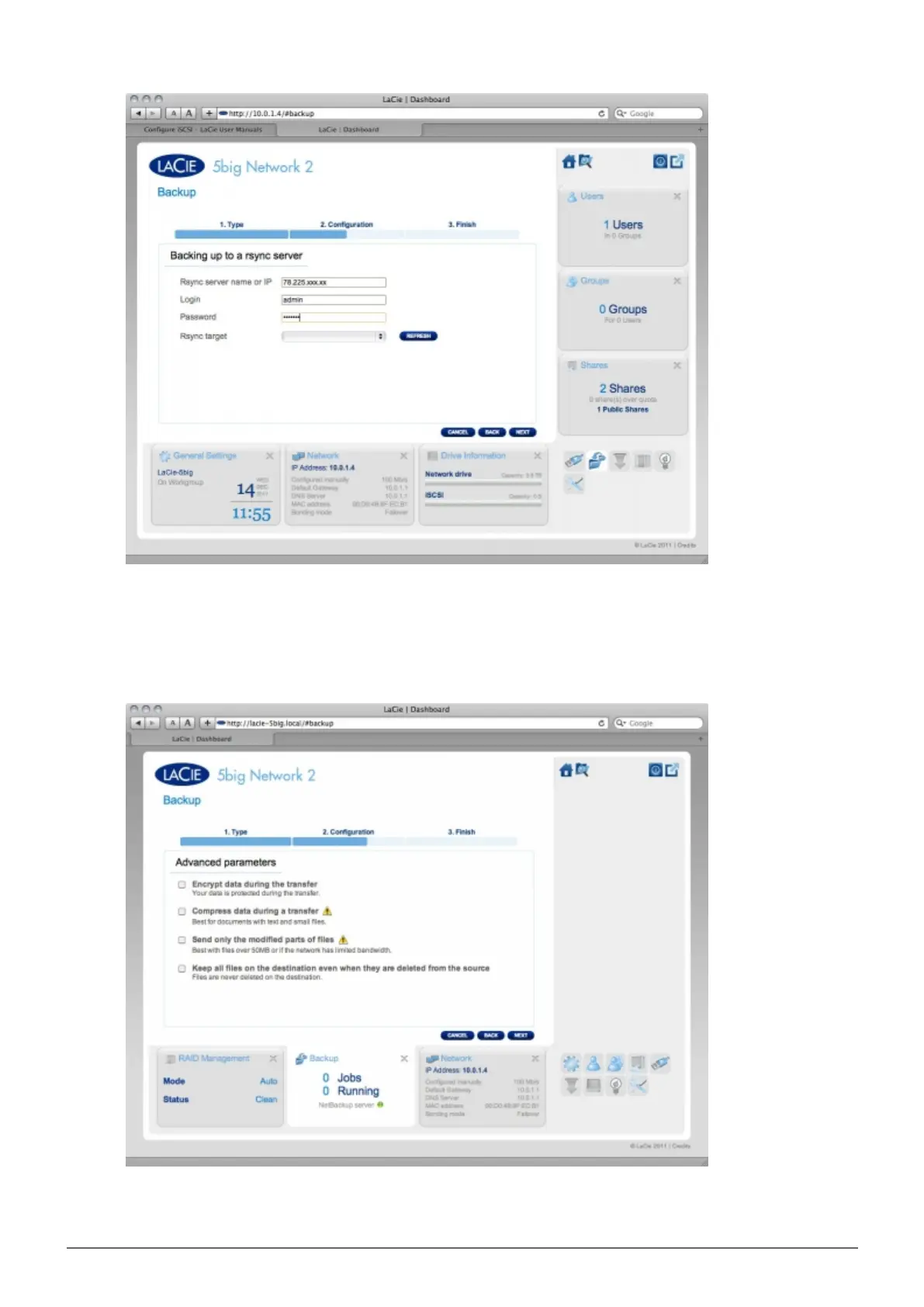 Select a Backup mode screen, which is explained in the local backup section of this user manual.