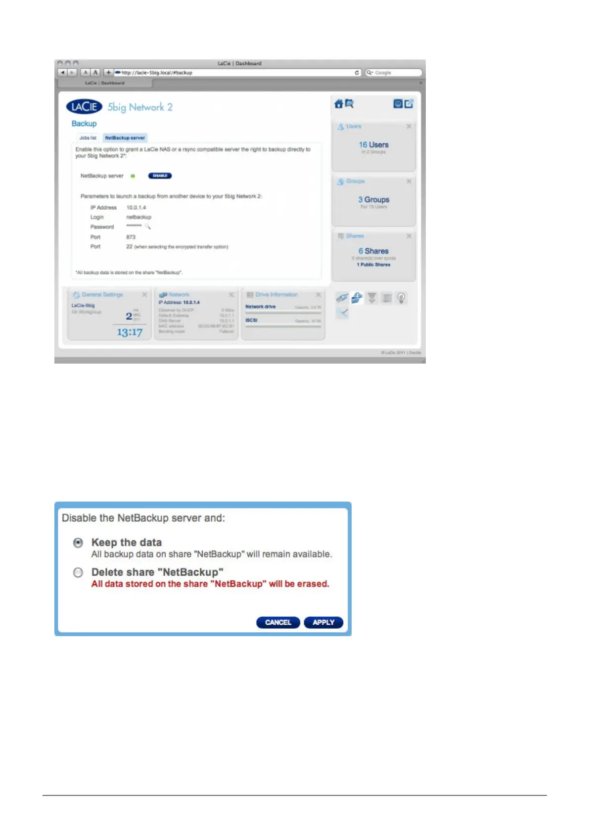 Delete share “Netbackup”. All data stored on the share Netbackup will be erased.