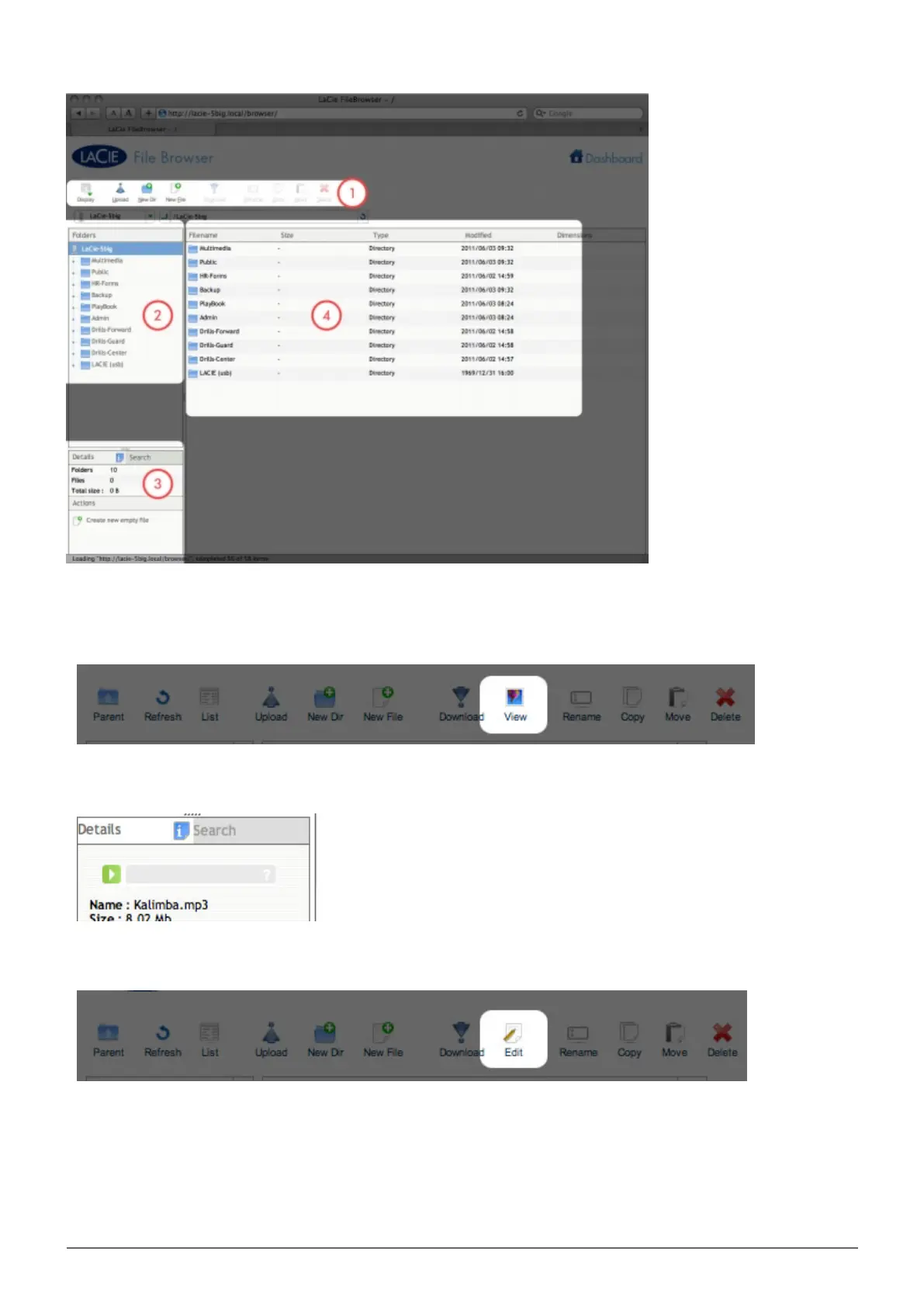 You can view photos full-sized as well as stream certain types of music and text files. Select the file, then: