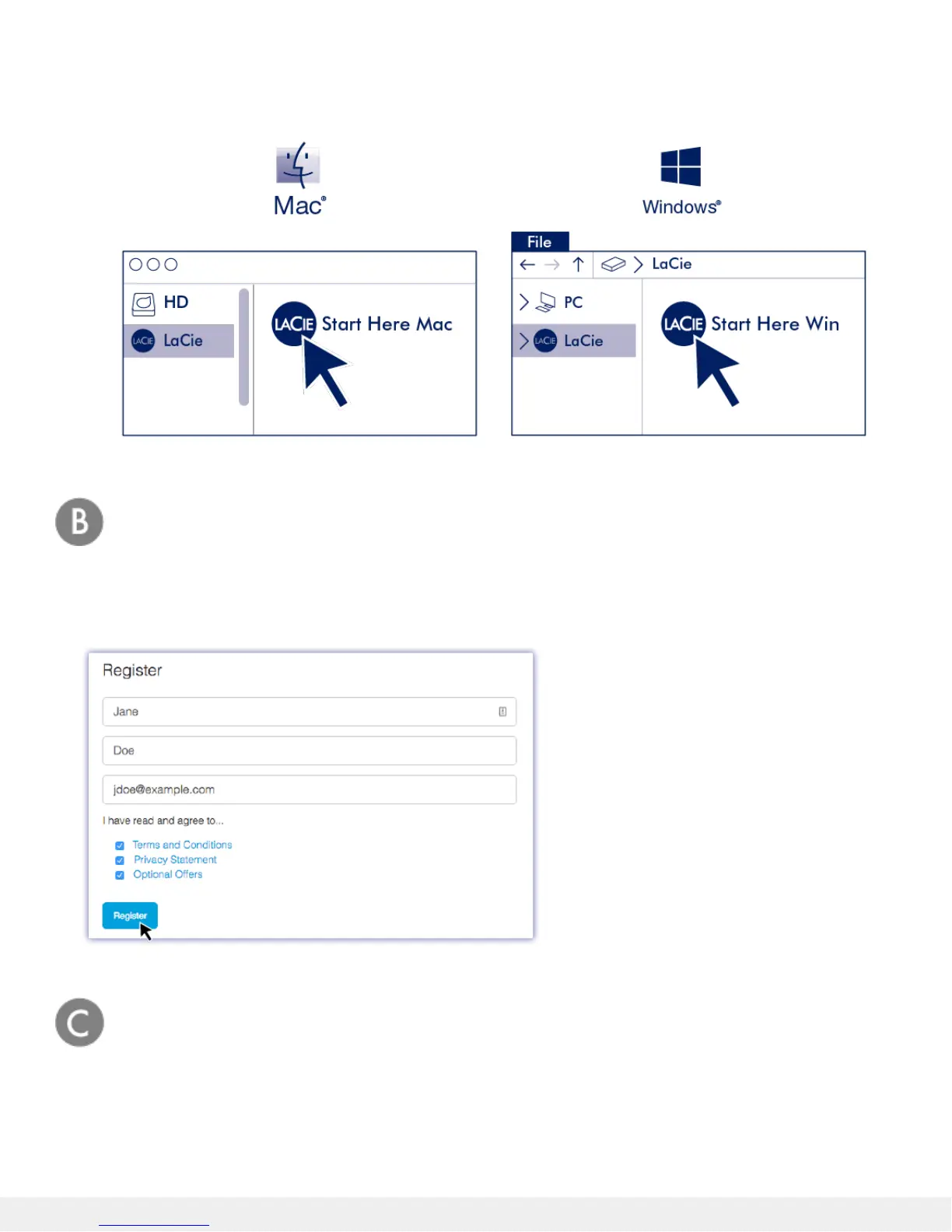 Using a file manager such as File Explorer or Finder, open LaCie 2big RAID and launch Start Here Mac or