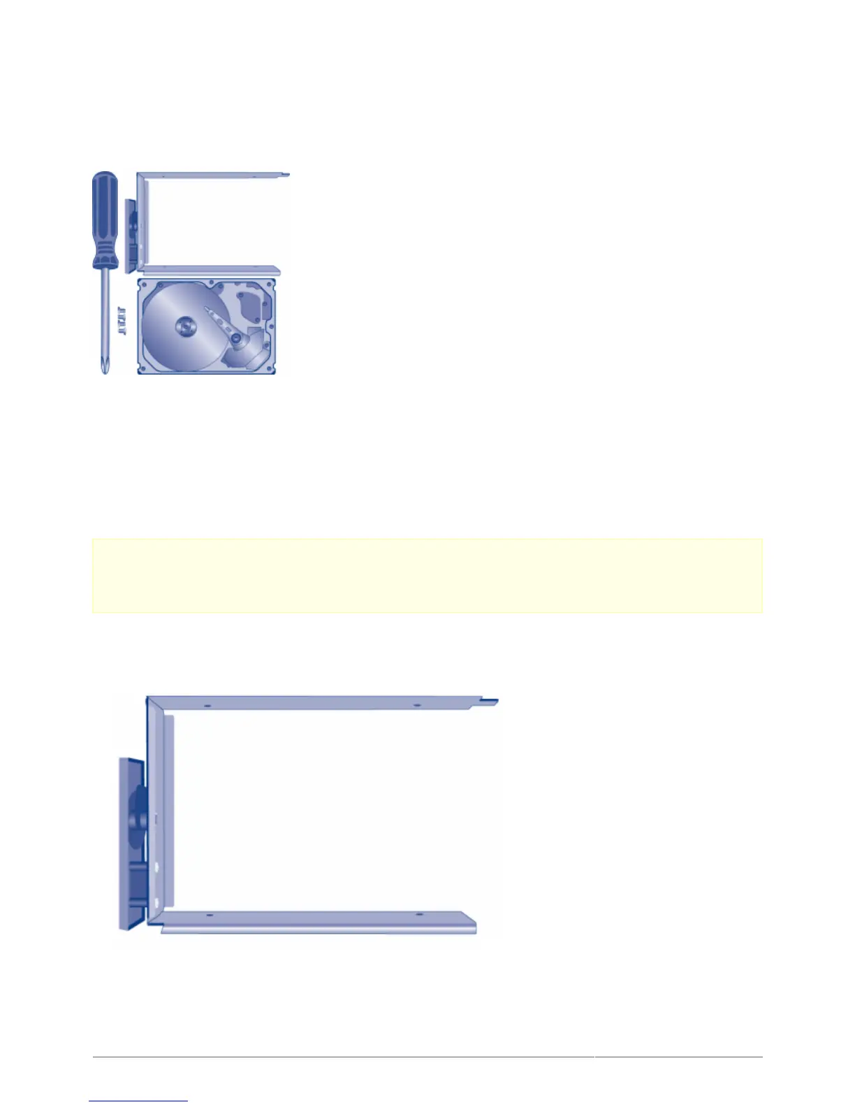 work space and the SATA connector facing to the right. The four tray screw slots should align with the disk’s