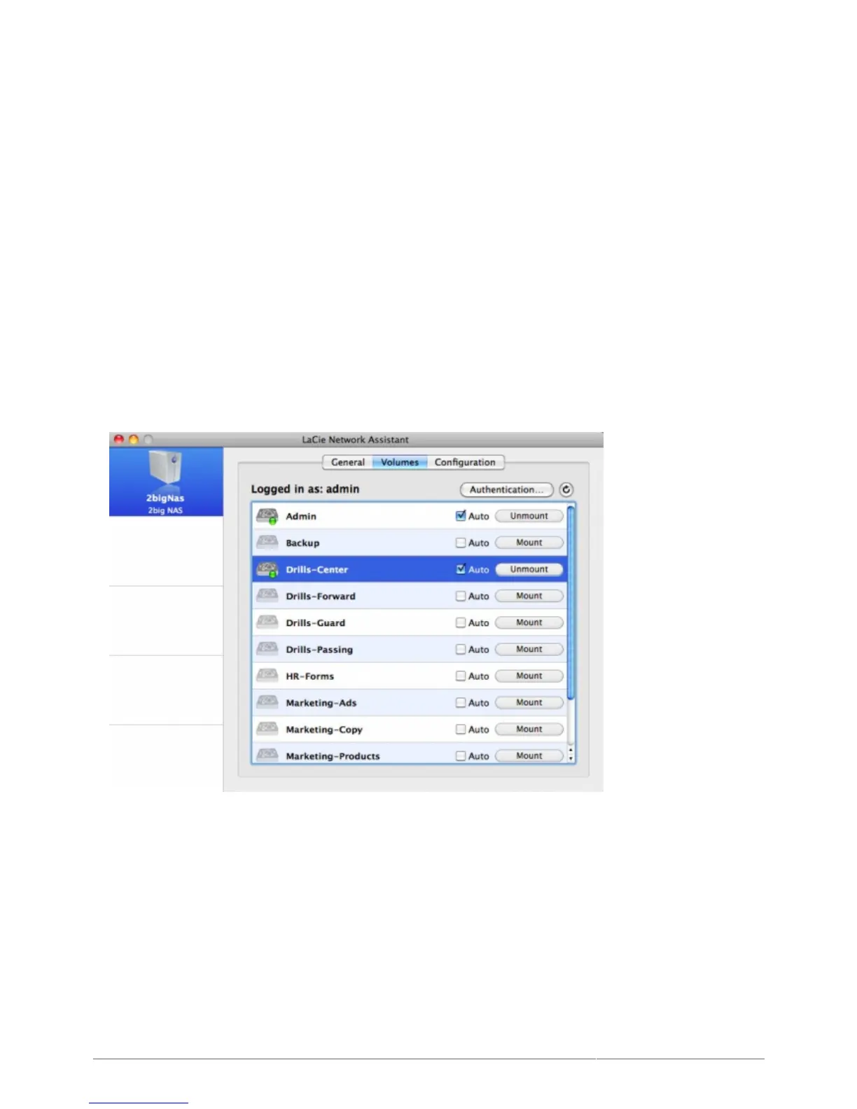 LaCie Network Assistant (LNA) can be configured to automatically mount shares on your computer, which allows