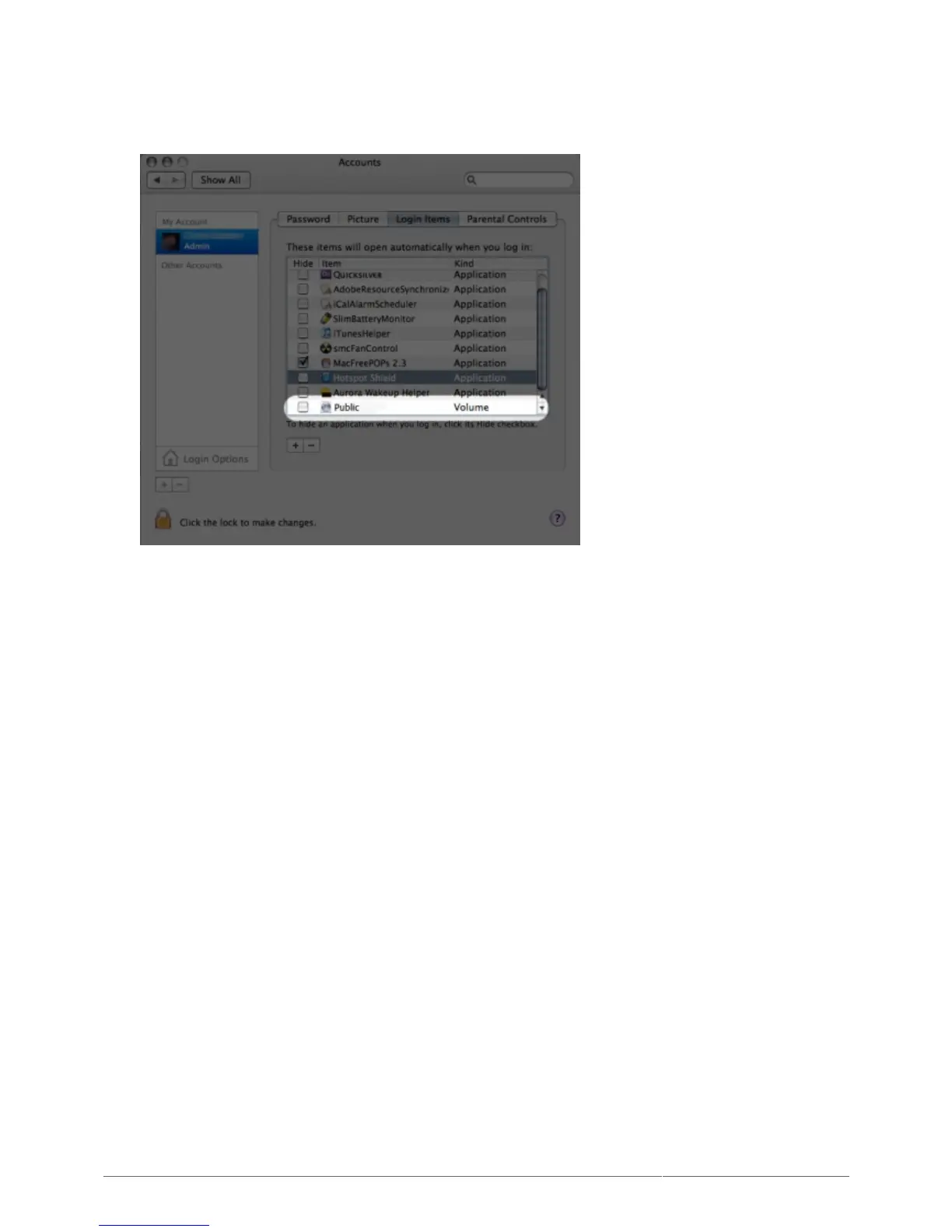 From the Apple icon in the menu bar, select System Preferences > Accounts > Login Items.1.