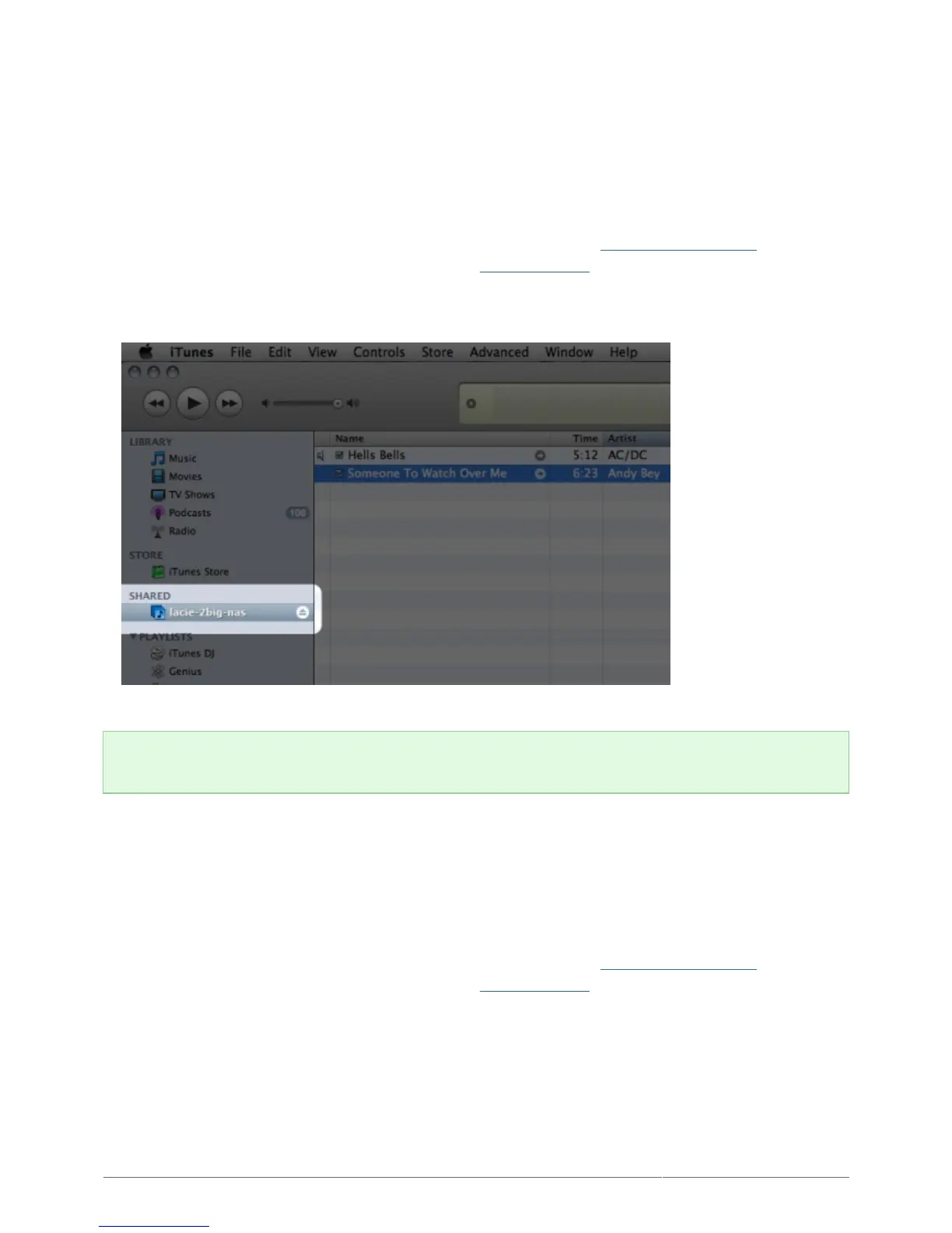 Your LaCie NAS can act as an iTunes Music server, streaming audio files to a computer on the network running