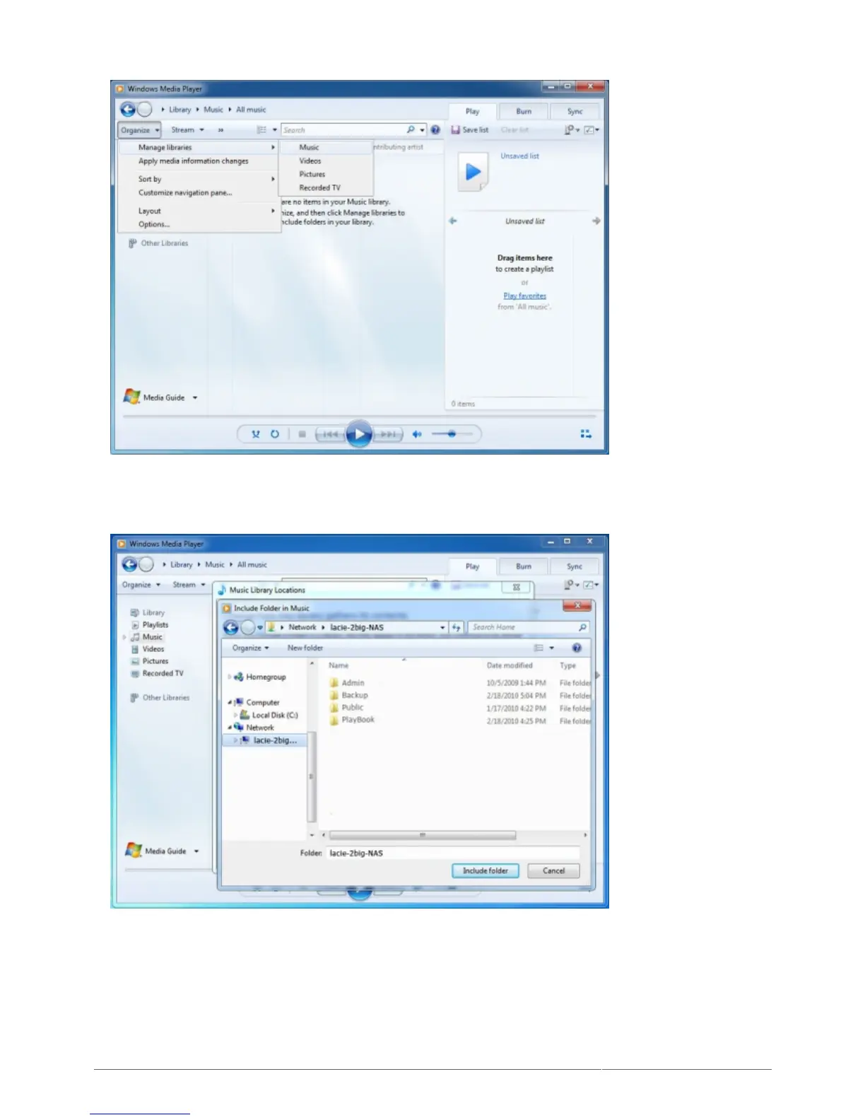 WMP will begin indexing the media files. Once completed, they will appear in the WMP library.5.
