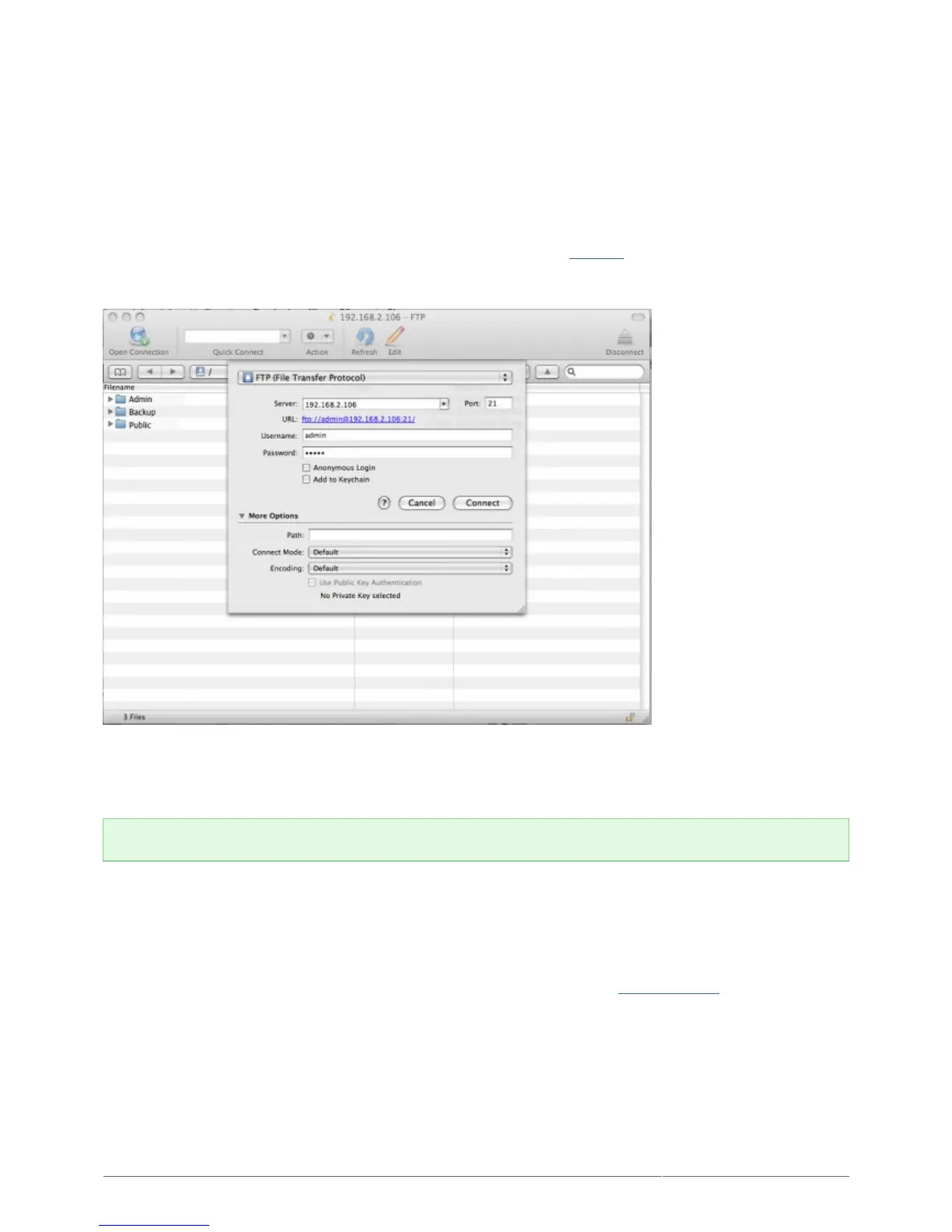 To connect to your NAS via FTP locally on the LAN, enter in your browser's or FTP client's address field: