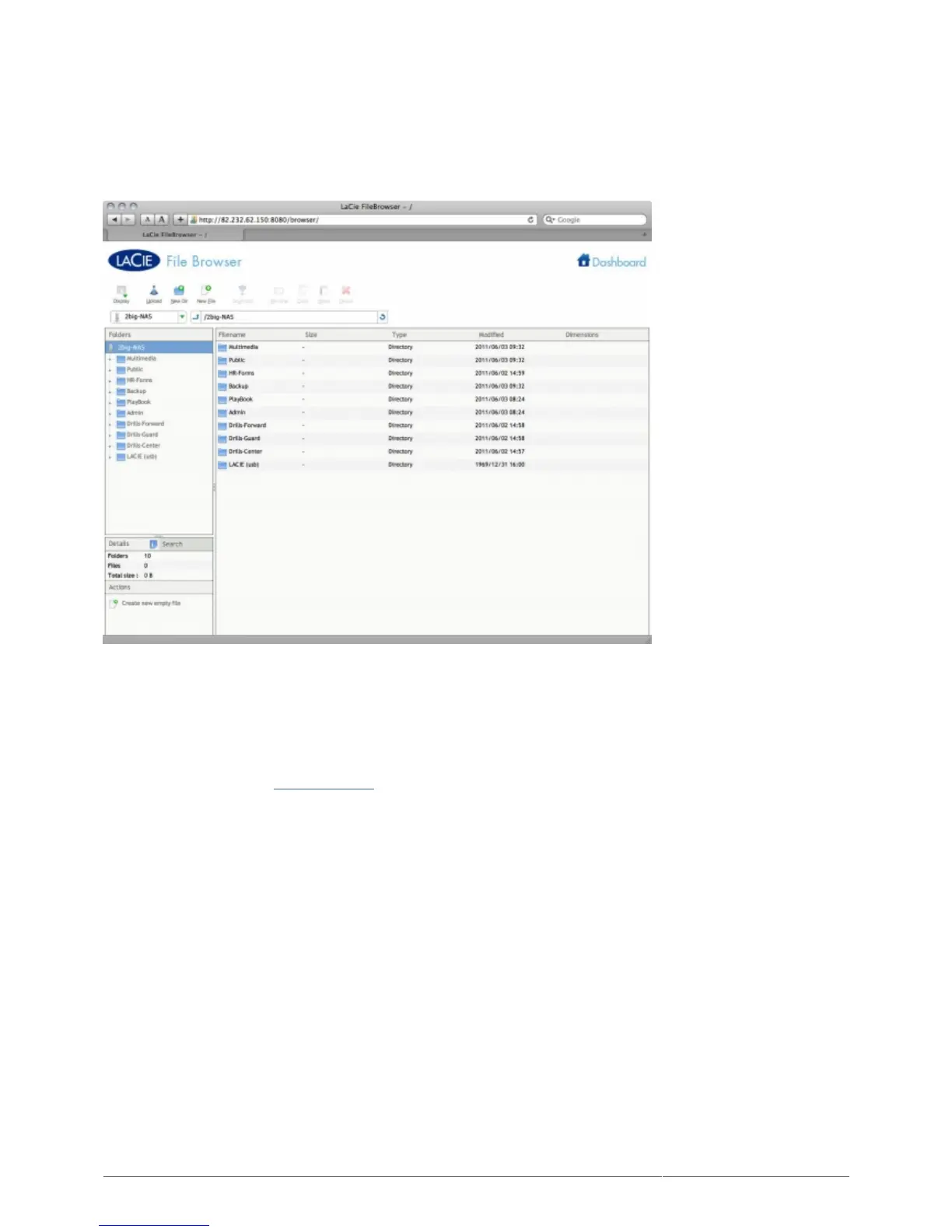 The Dashboard features an interactive file browser that allows you to manage and transfer files via HTTP.