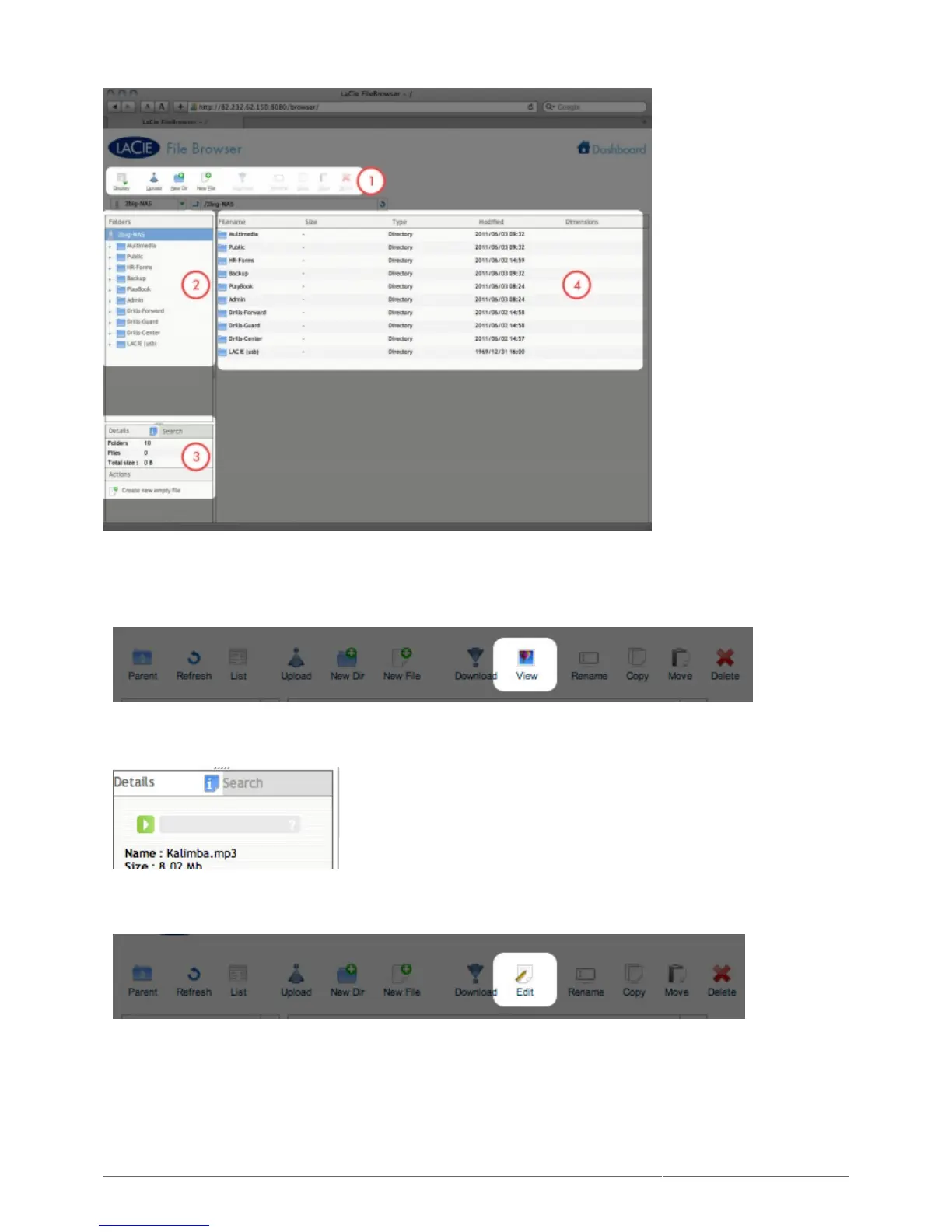 You can view photos full-sized as well as stream certain types of music and text files. Select the file, then: