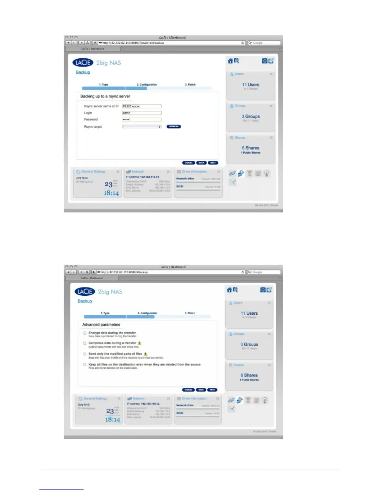 In the Advanced parameters screen, choose optional features such as encryption or compression,3.