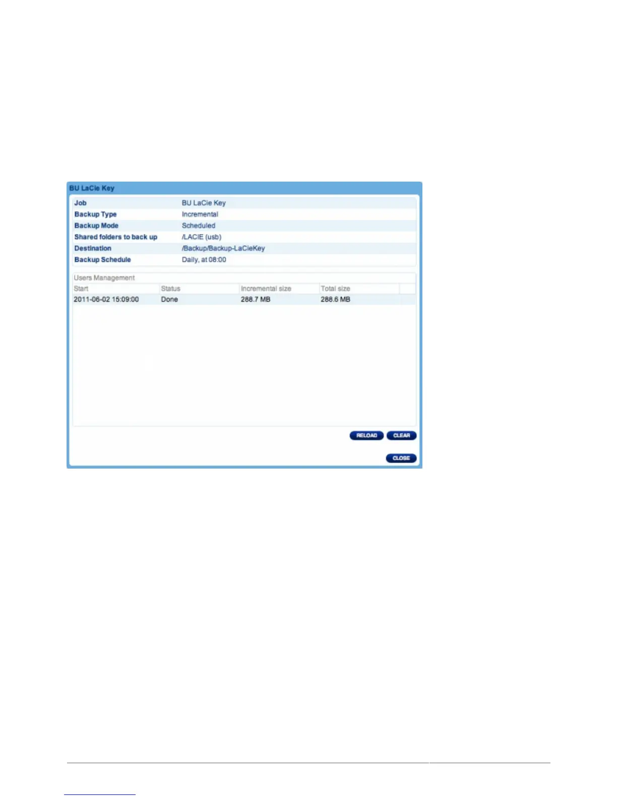 Jobs you have created will be listed in the table on the Backup page. This table will display useful information