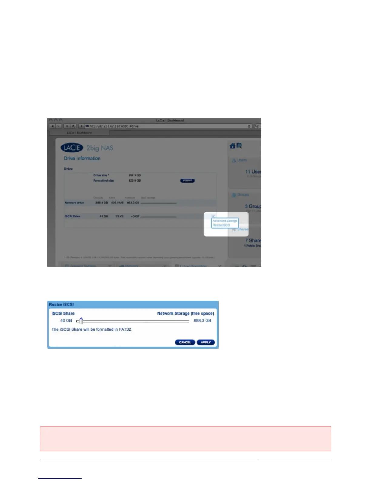 Drag the slider to change the amount of space allocated to iSCSIShare. After you click the slider, press the2.