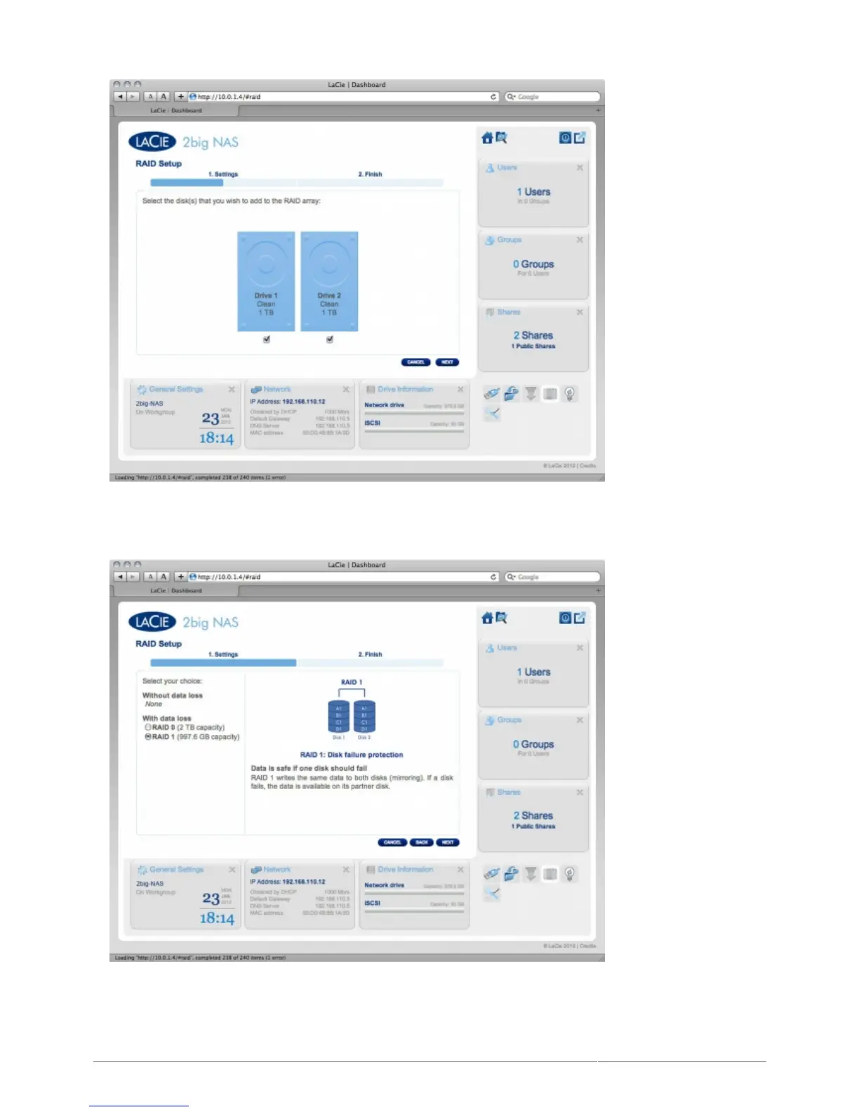 In the next screen, choose a RAID level. Clicking the RAID mode's button will give you an explanation of its2.