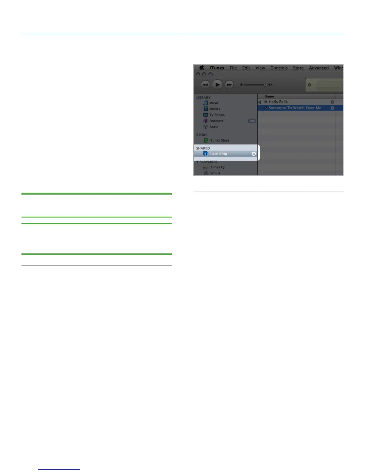 pear in the Shared category within iTunes, and audio files stored on