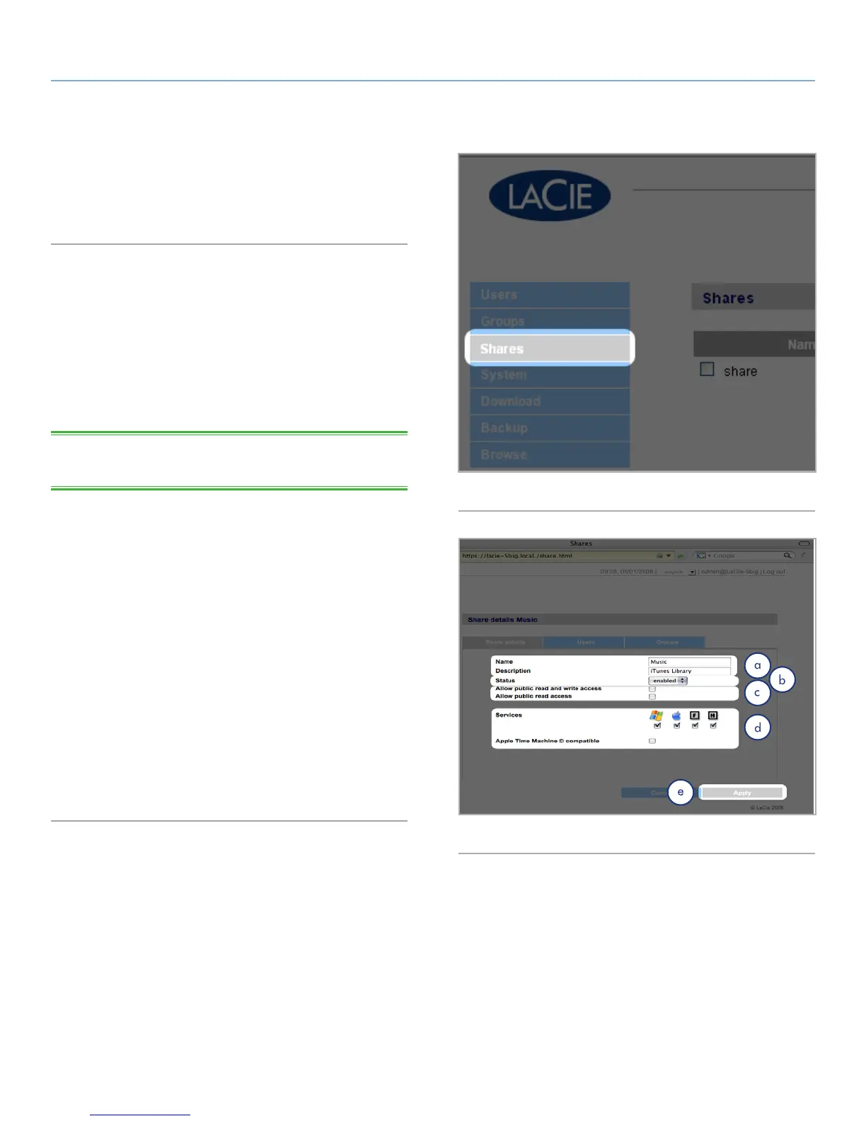 page (Fig. 45). Use this page to create, edit and delete shares.