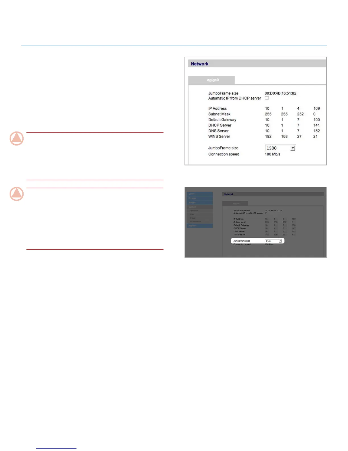 modify the JumboFrame size if your network is not configured