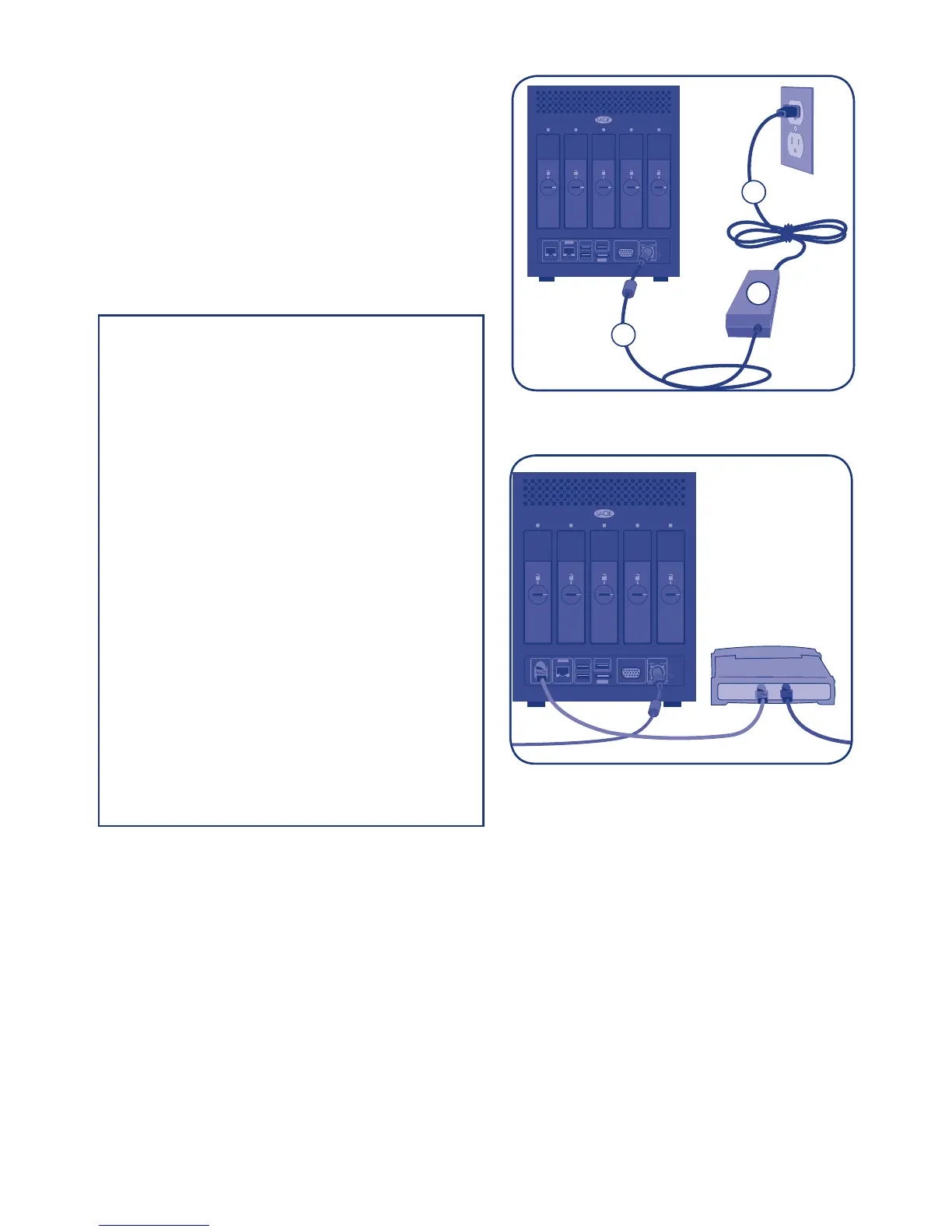 1. Connect an Ethernet cable to one of the Ethernet ports on the back of the LaCie 5big Storage Server