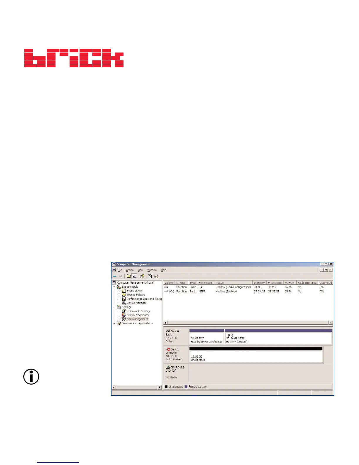 • Windows 2000 and XP – Use the Disk Management Utility, which is native to the operating system.