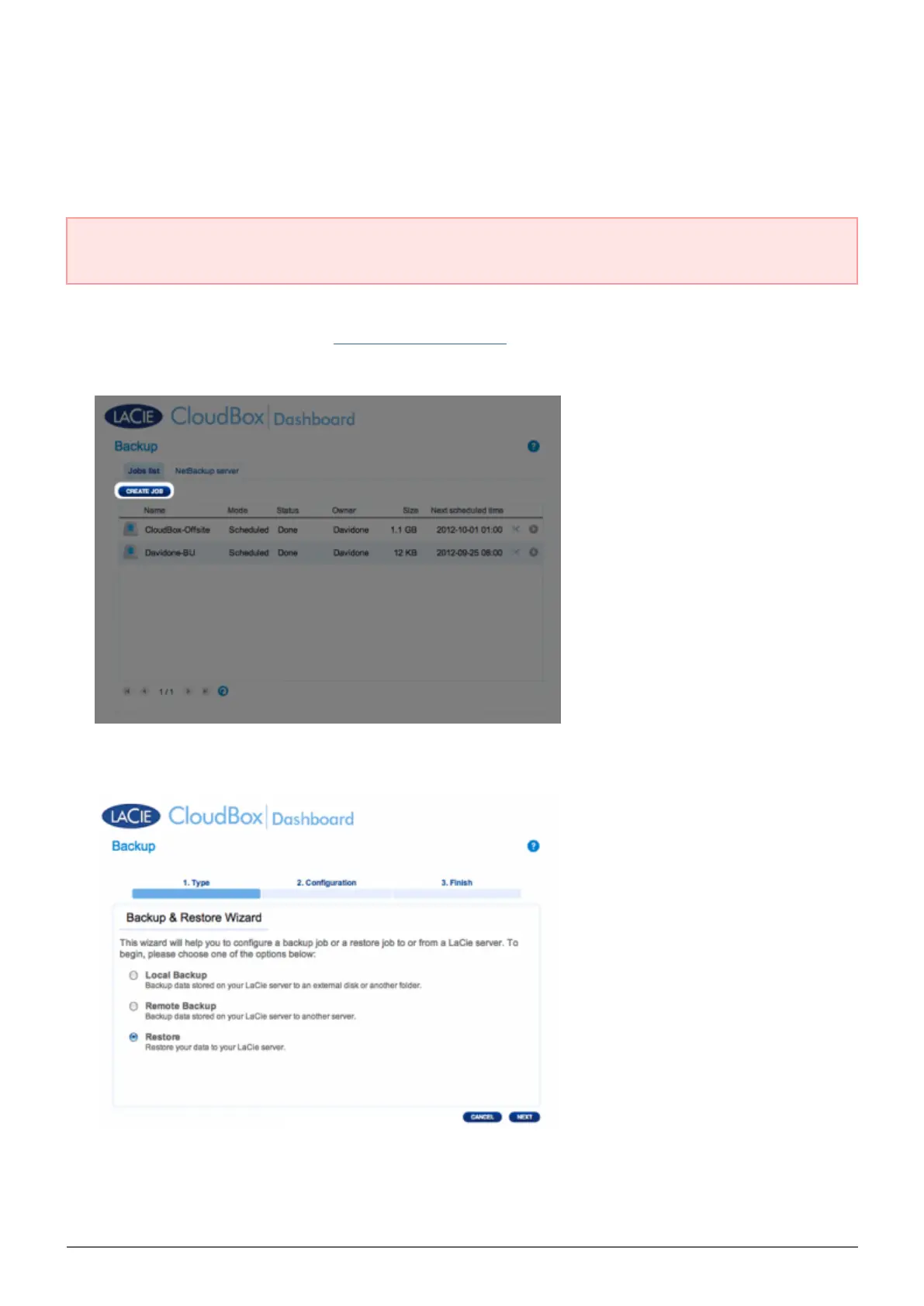 Restore and Remote Backups: Remote Backups cannot be restored using the Backup & Restore Wizard.