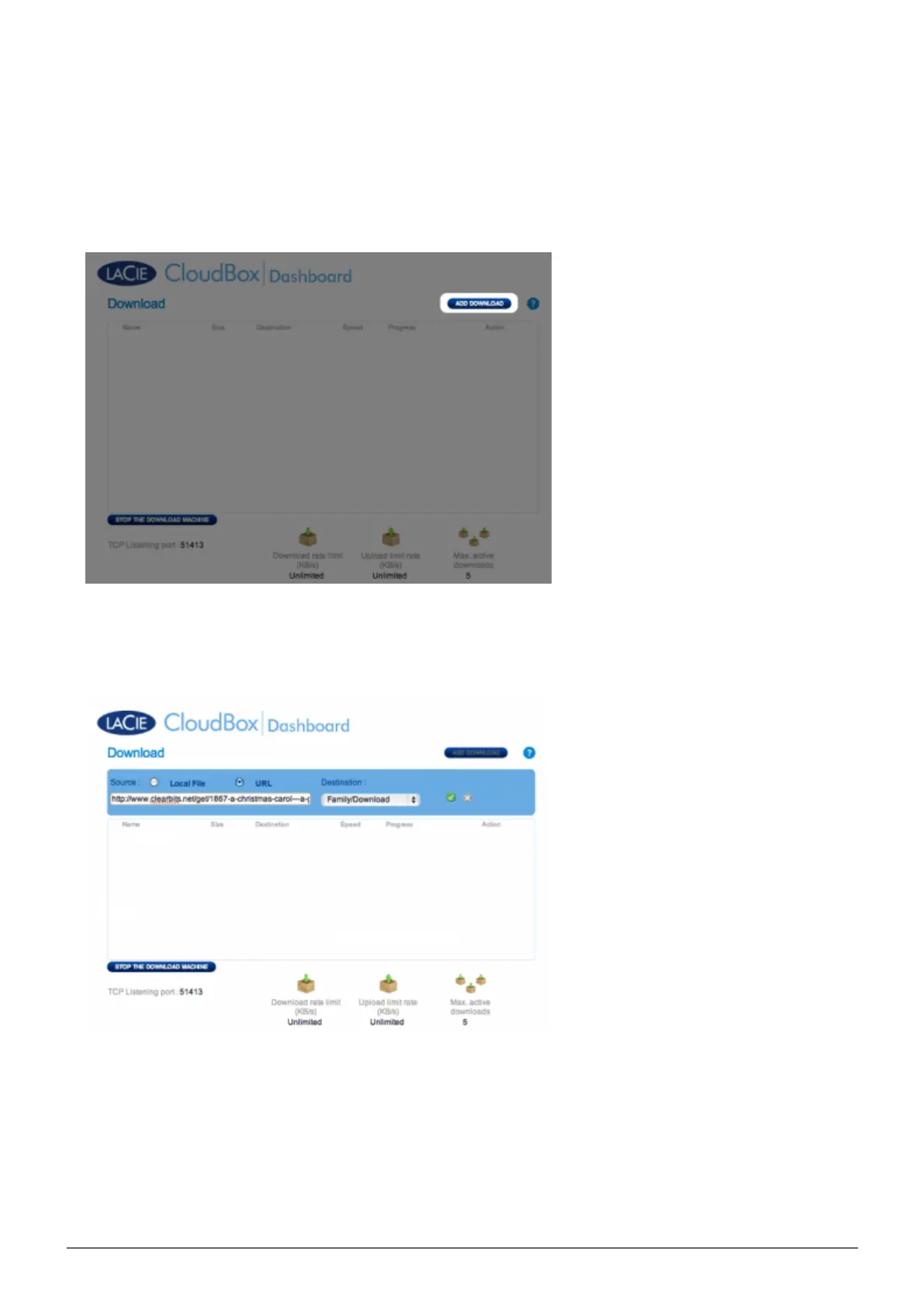 Choose the destination folder on the LaCie CloudBox: the Family folder or the administrator/user folder. A3.