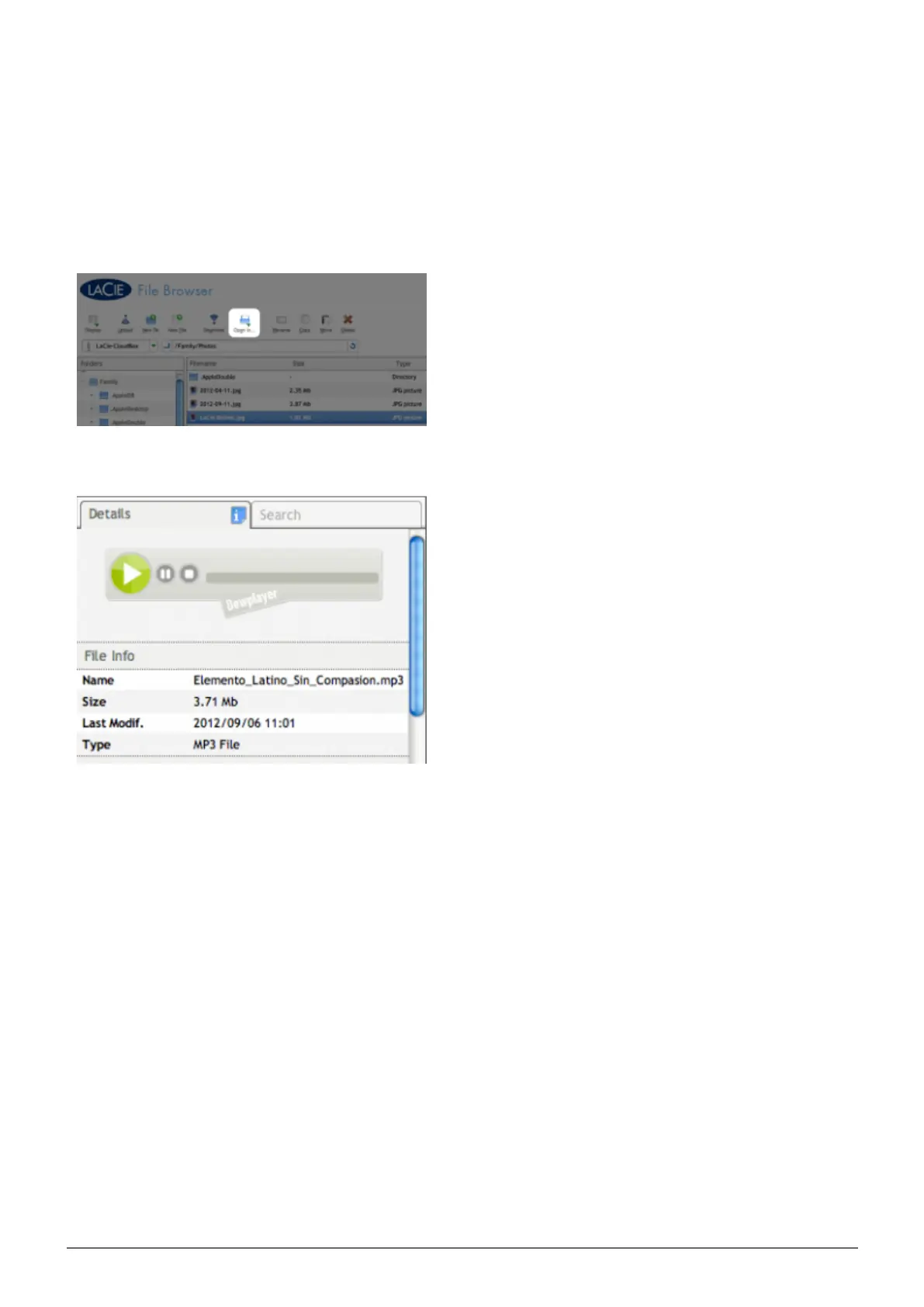 You can view photos, edit text files, and stream music (MP3). Select the file, then: