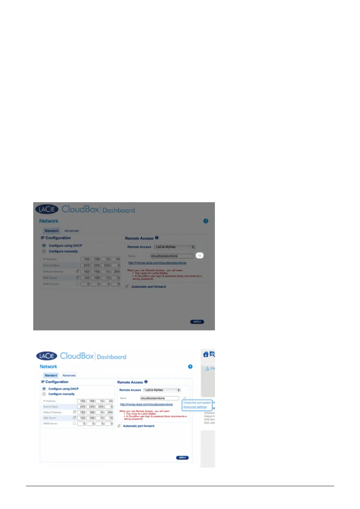 If you receive an error that your LaCie CloudBox is unable to connect to the internet, you may need to: