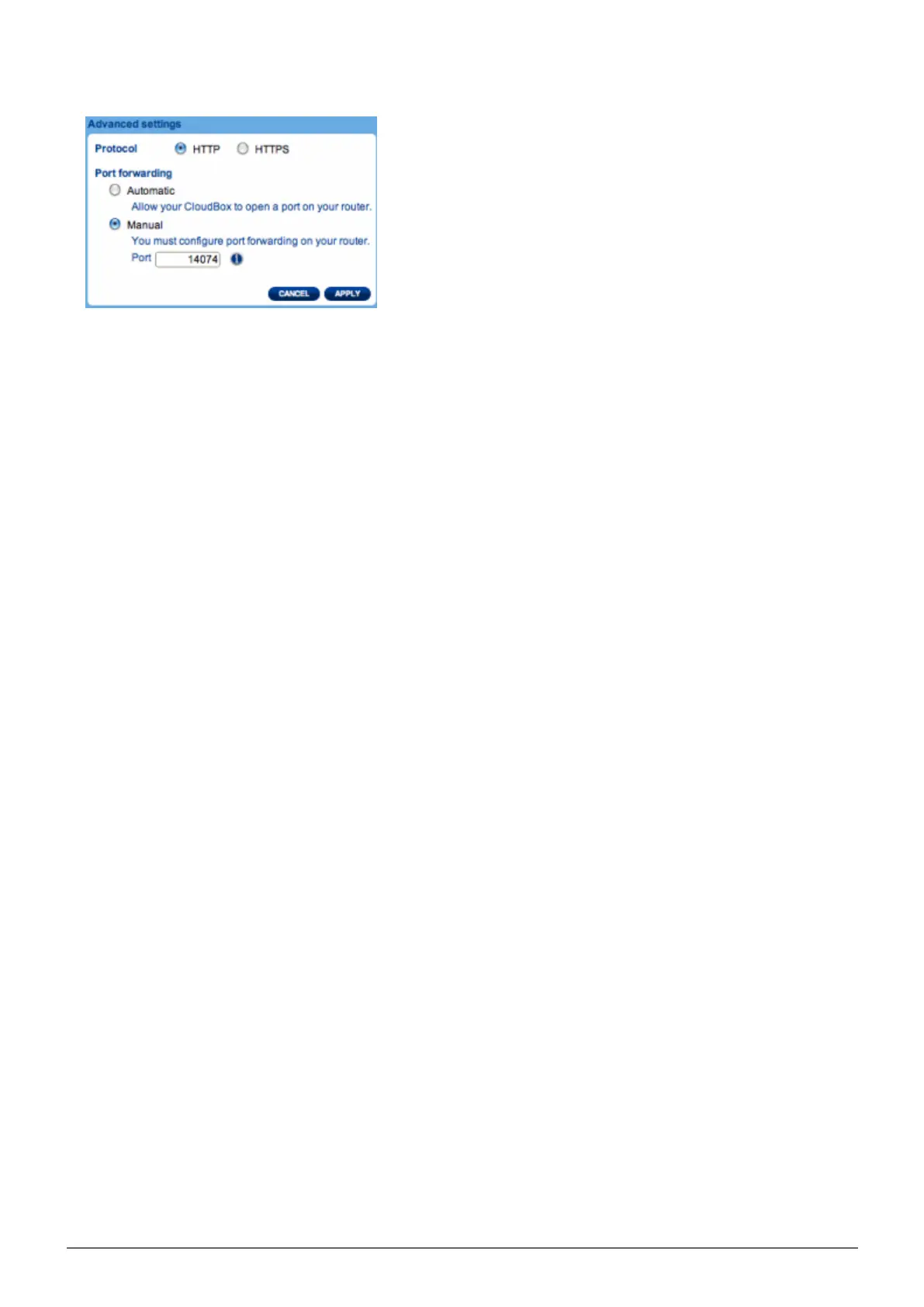 In the dialogue window that appears, click Manual and type the port number that your router will forward.3.