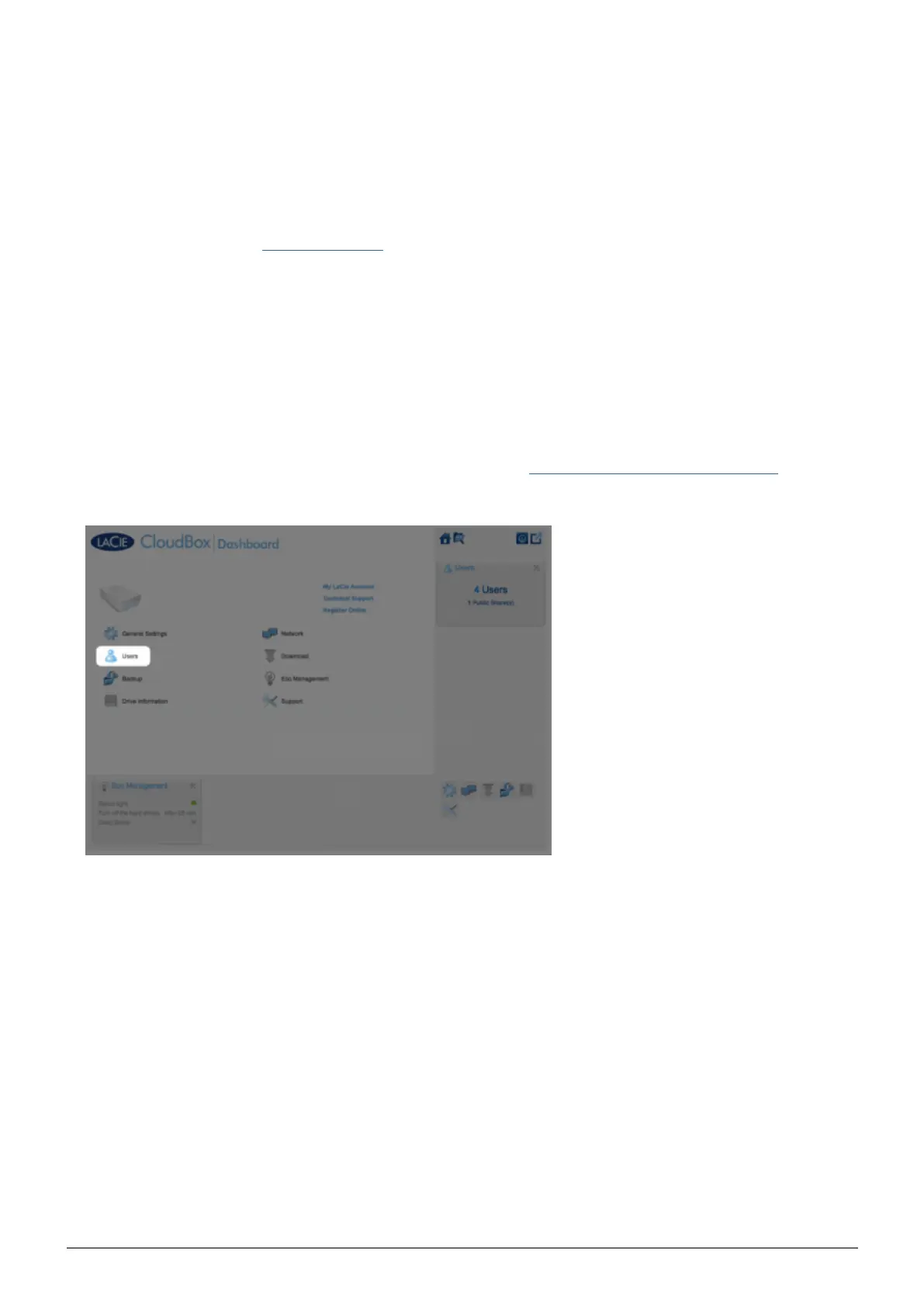 Step 1: Create a special user in the LaCie CloudBox Dashboard