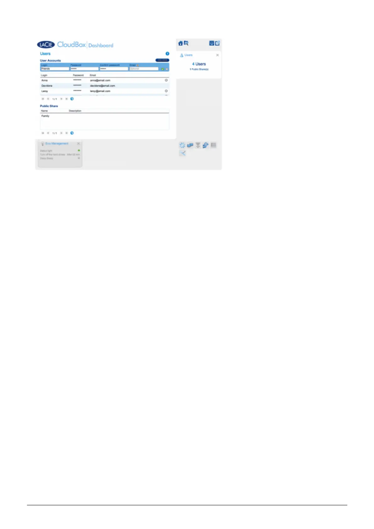 From any computer in your home, open the LaCie CloudBox folder that you will share with friends and family1.