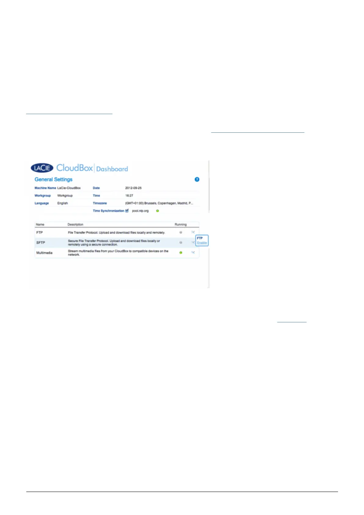 Once FTP is enabled, the LaCie CloudBox can be accessed using an internet browser or FTP client software. FTP