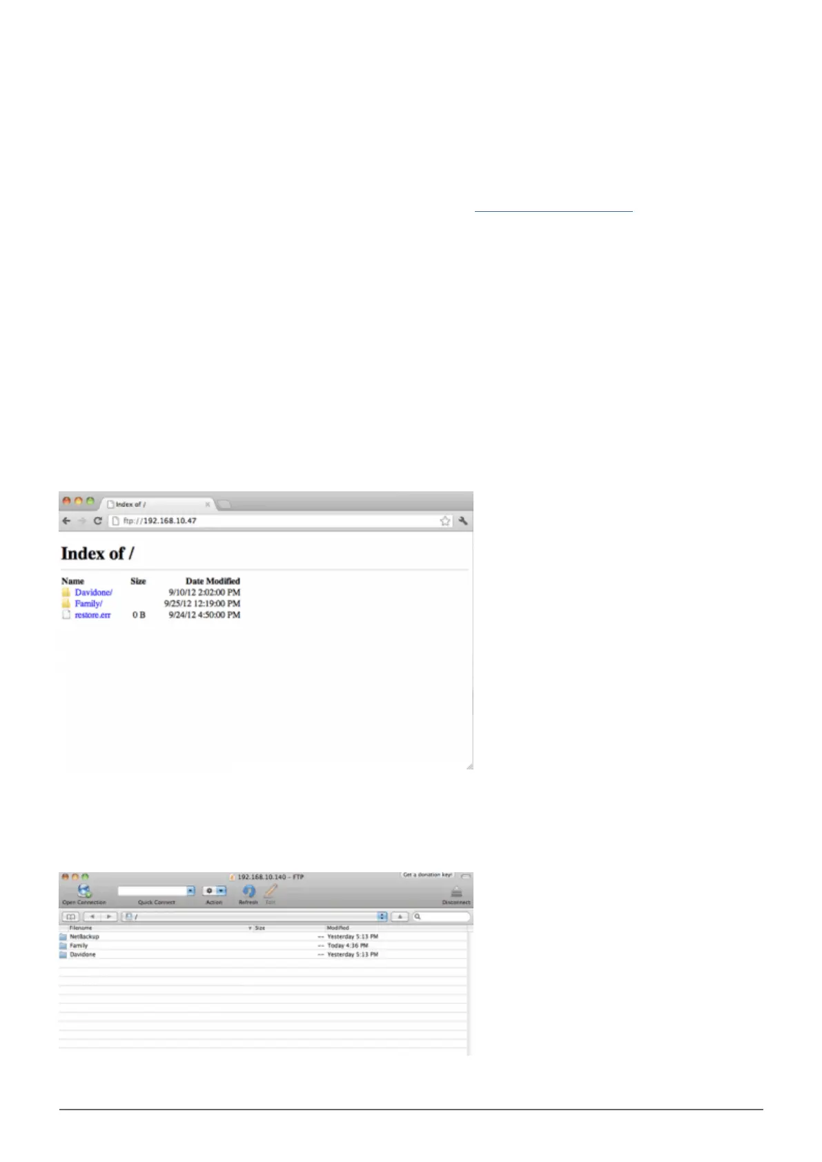 To use the FTP service on your home network, enter your LaCie CloudBox IP address or device name in the FTP