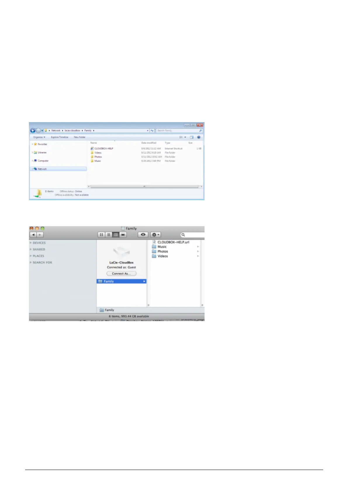 Windows: Computer/Network > LaCie-CloudBox > Family > CloudBox-Help